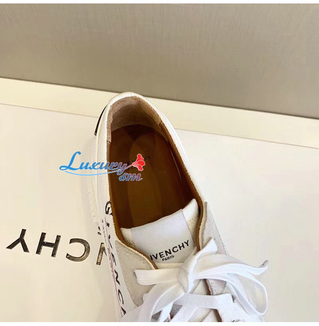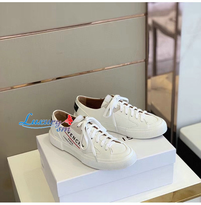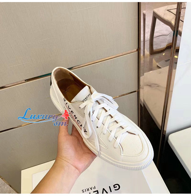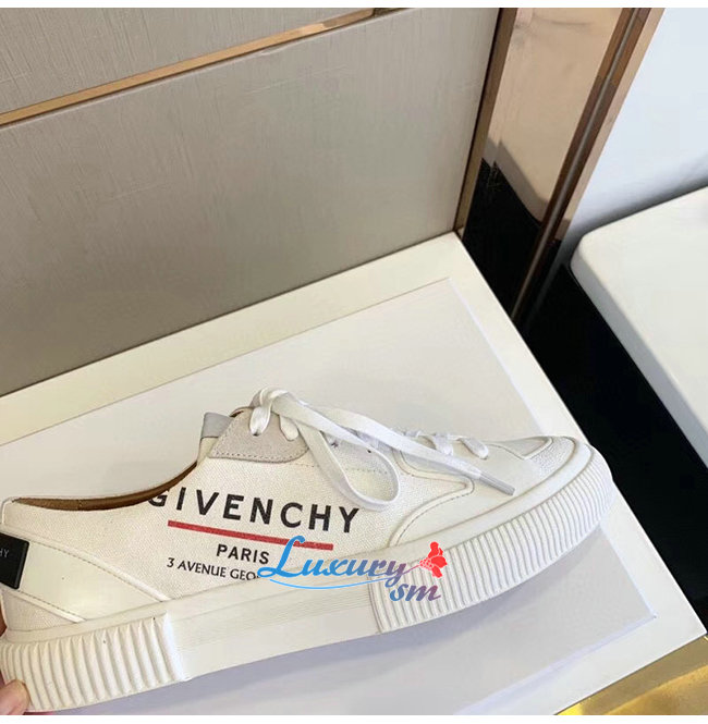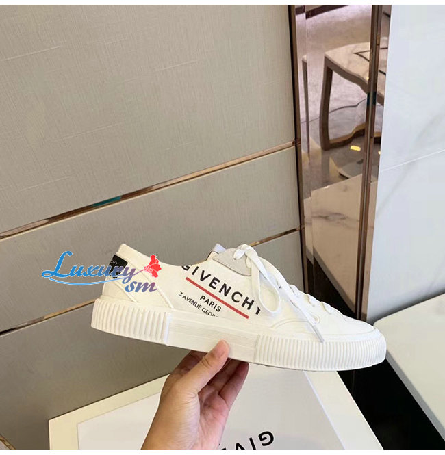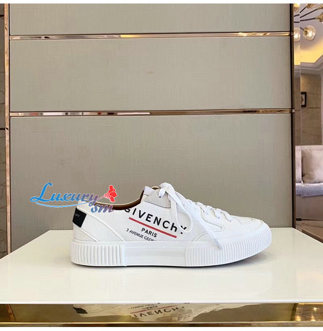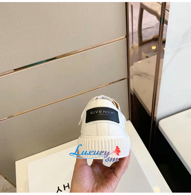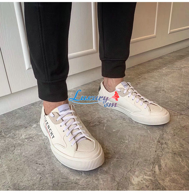 GIVENCHY-BH001TH0 지방시 화이트 GIVENCHY 라벨 캔버스 테니스 라이트 로우탑 스니커즈