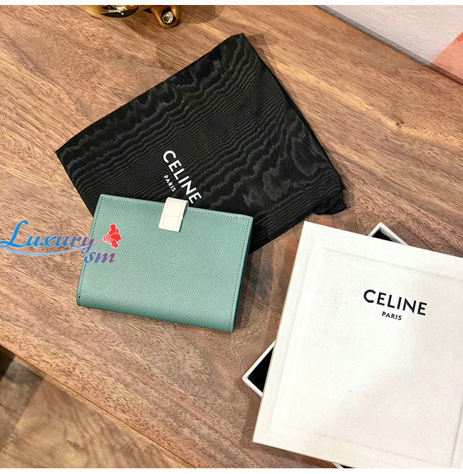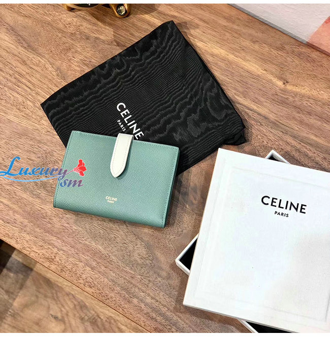 [스페셜오더]CELINE-10B643 셀린느 셀라돈/화이트 카프스킨 미디엄 스트랩 월릿