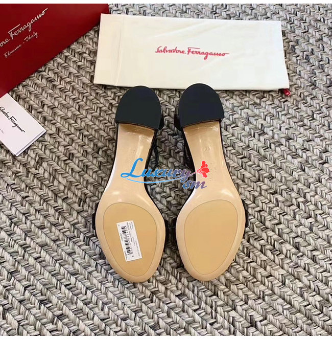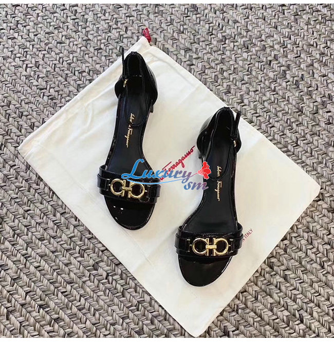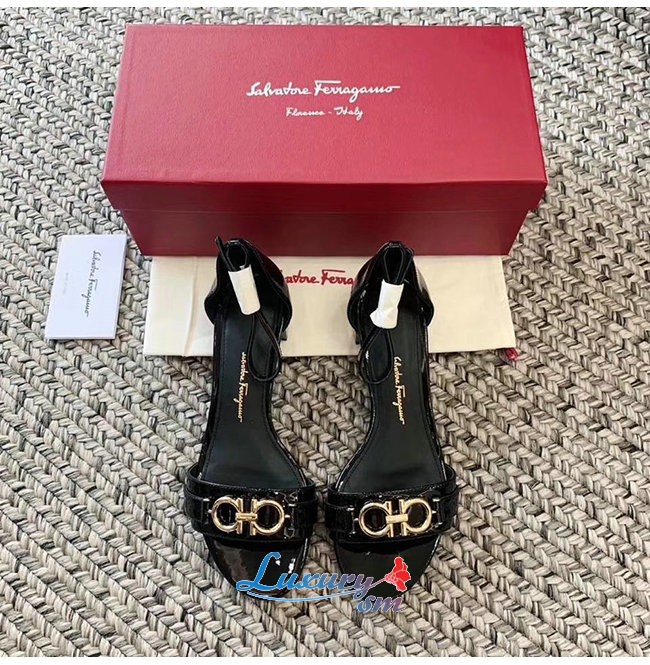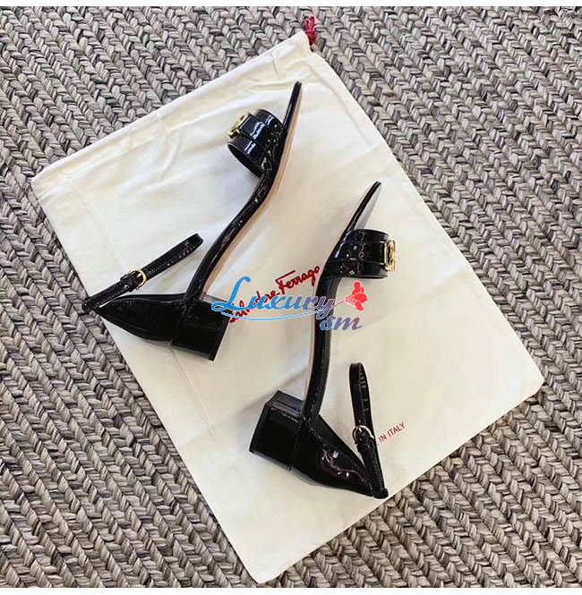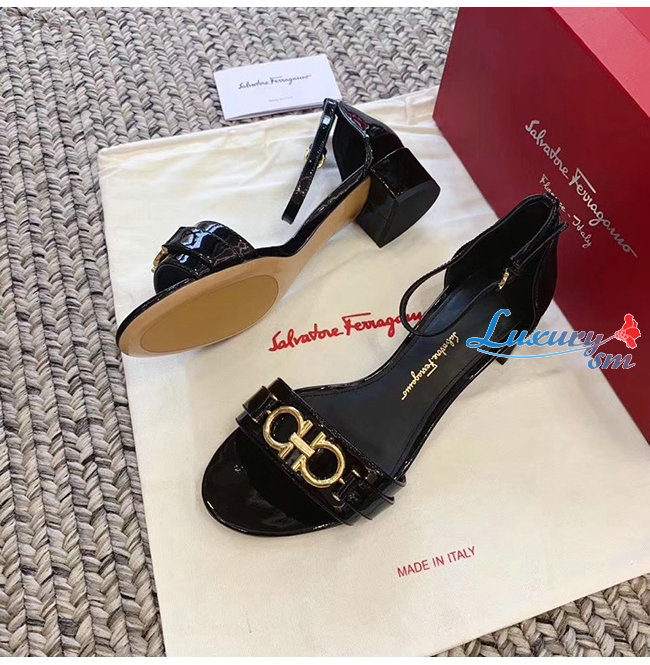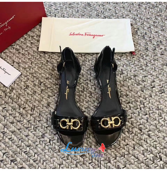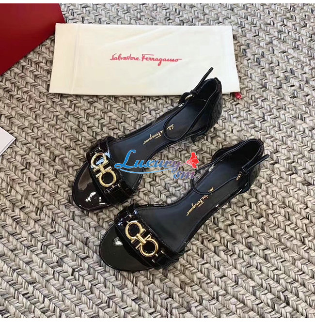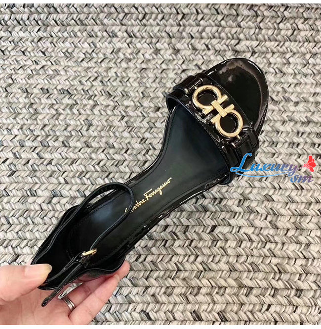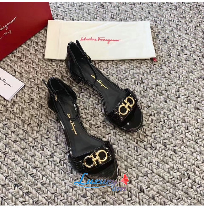 Ferragamo-01P087 페라가모 블랙 페이턴트 가죽 간치니 샌들