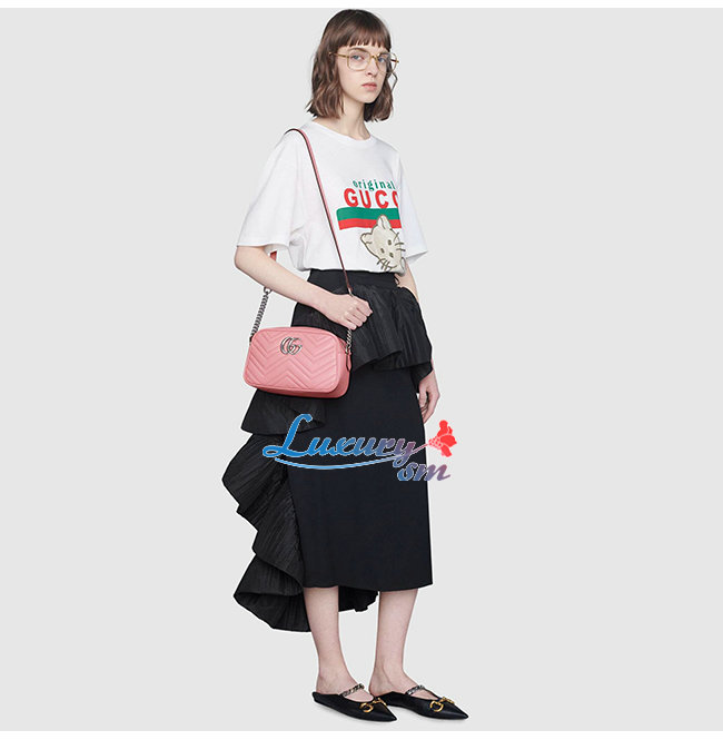 [스페셜오더]GUCCI-447632 5554 구찌 GG Marmont 핑크 스몰 소프트 스트럭처드 체인 숄더백
