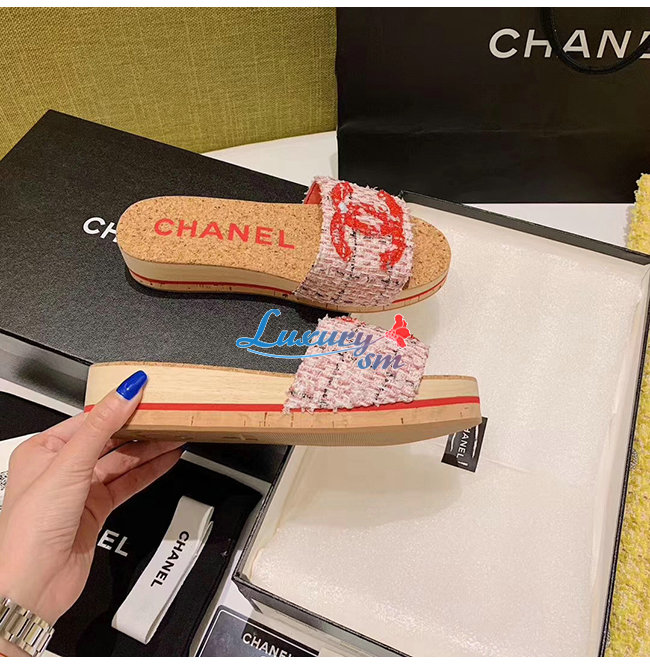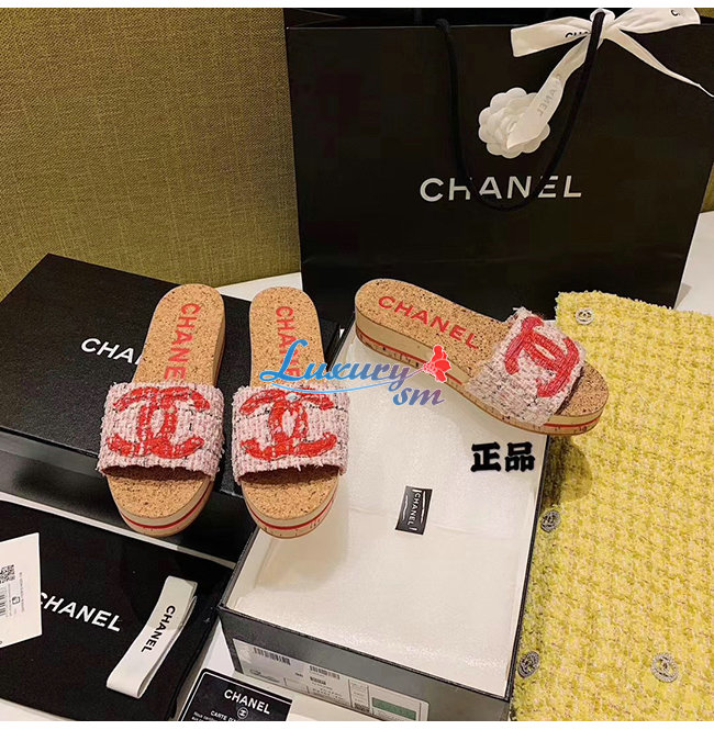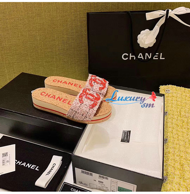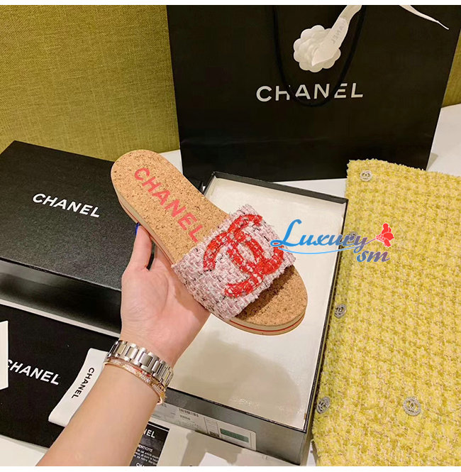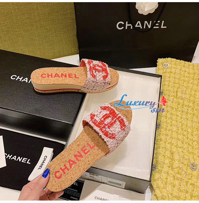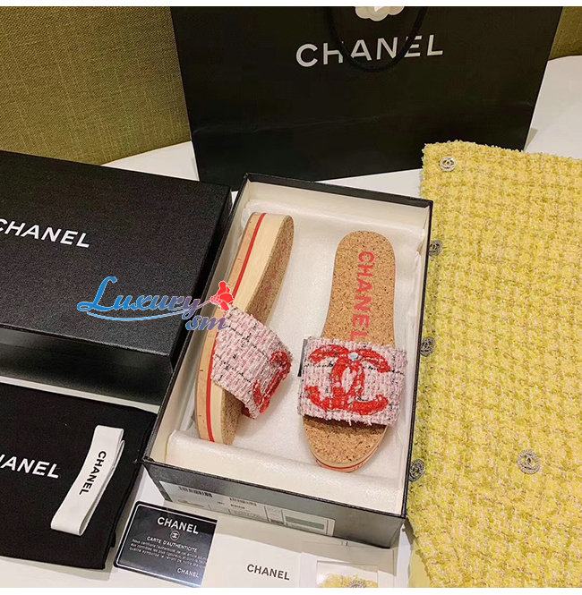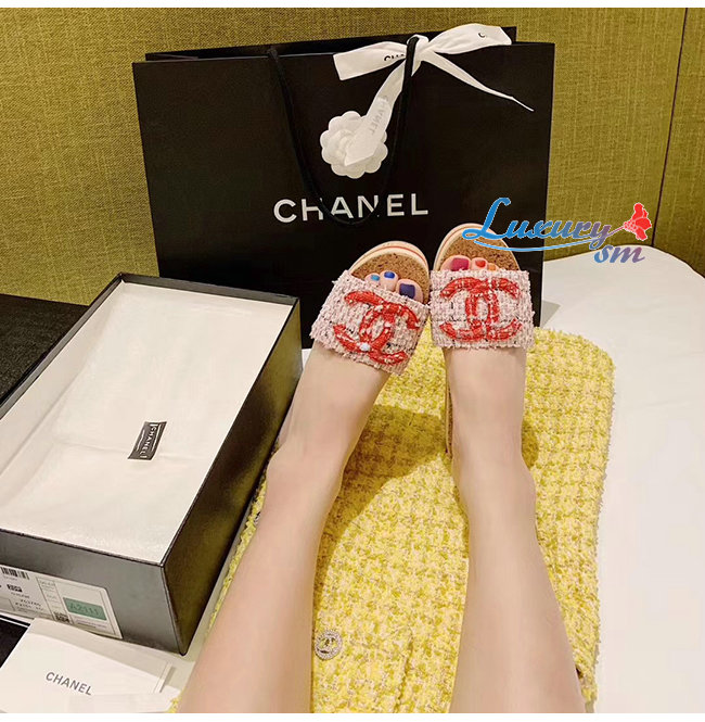CHANEL-G35799 샤넬 핑크/레드 트위드 뮬