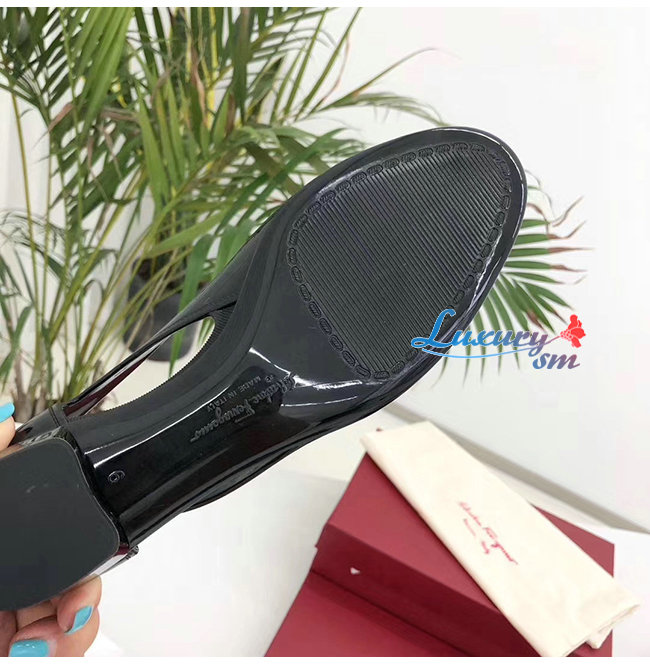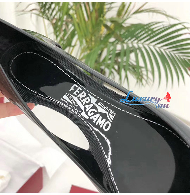 Ferragamo-035656 페라가모 블랙 PVC 바라 보우 슬립