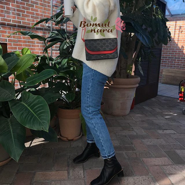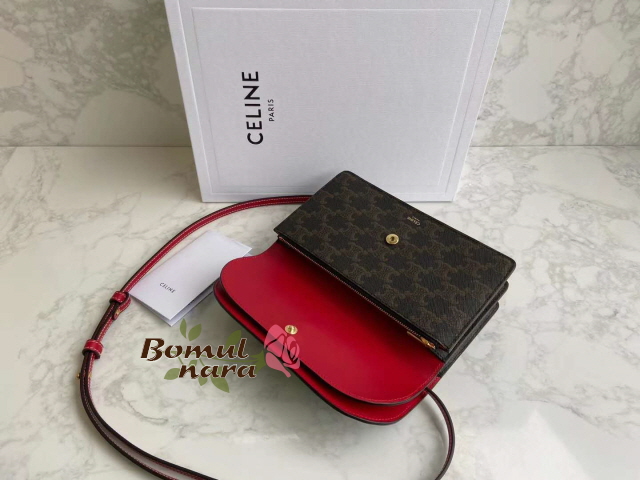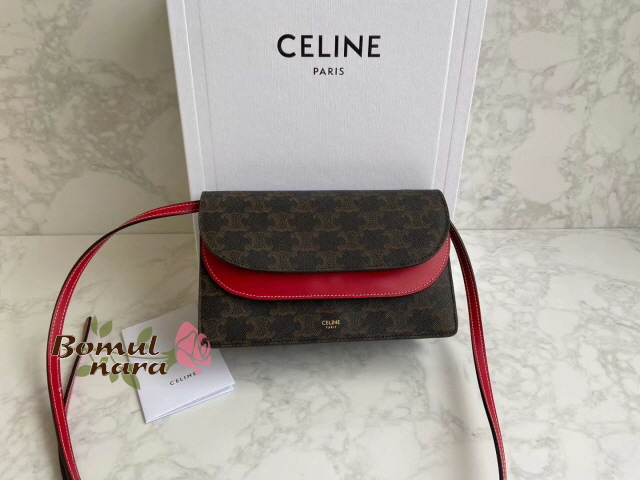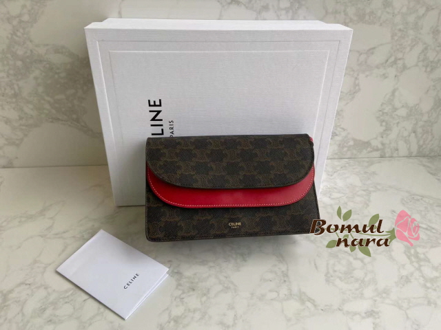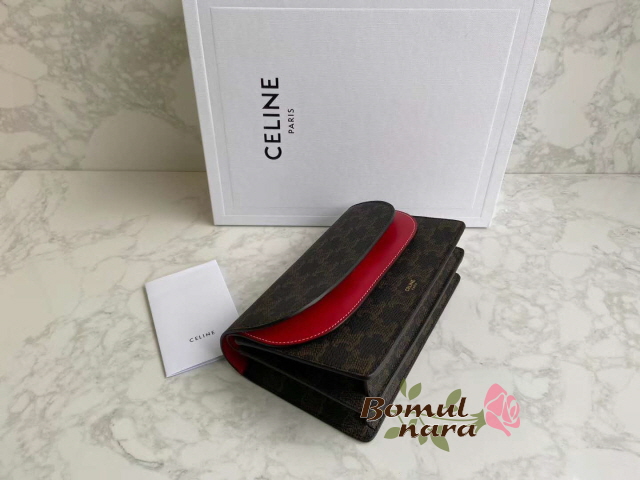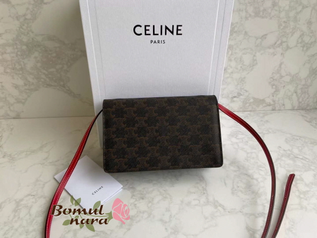 [스페셜오더]CELINE-10D852 셀린느 레드 트리오페 캔버스 월렛 온 스트랩