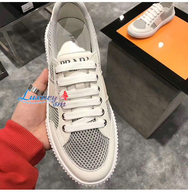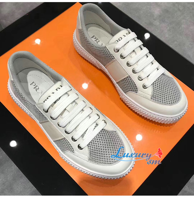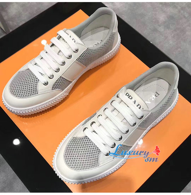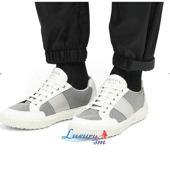 PRADA-4E3506 프라다 화이트 메시 송아지 가죽 스니커즈