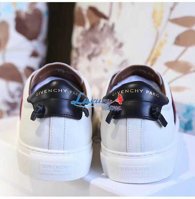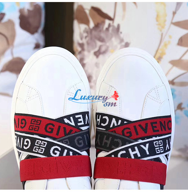 GIVENCHY-BE000JE 지방시 화이트/블랙/레드 GIVENCHY 4G 가죽 웨빙 스니커즈 남여공용