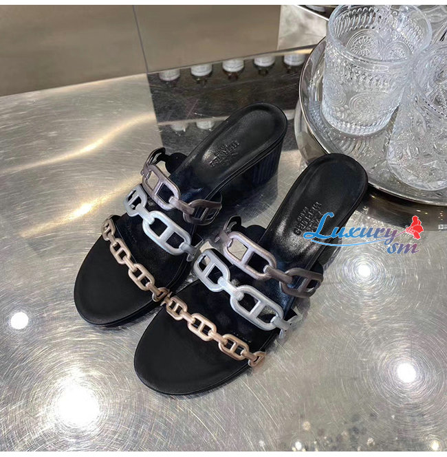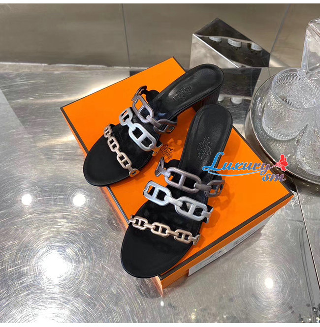 HERMES-H192146Z 에르메스 블랙 나파 가죽 Tandem 샌들