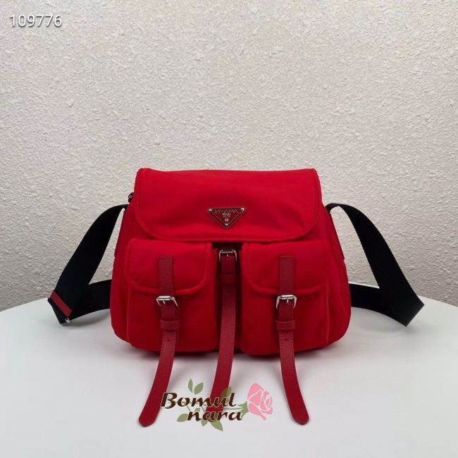 [스페셜오더]PRADA-1BD225 프라다 레드 사피아노 가죽 트리밍 나일론 숄더백