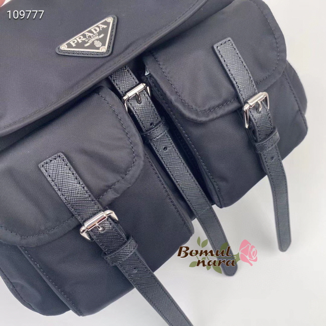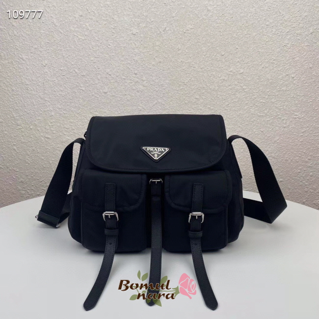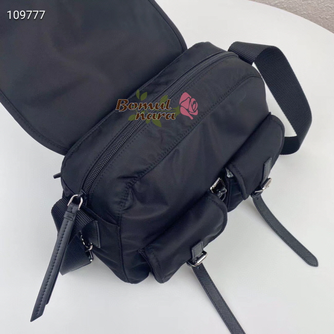 [스페셜오더]PRADA-1BD225 프라다 블랙 사피아노 가죽 트리밍 나일론 숄더백