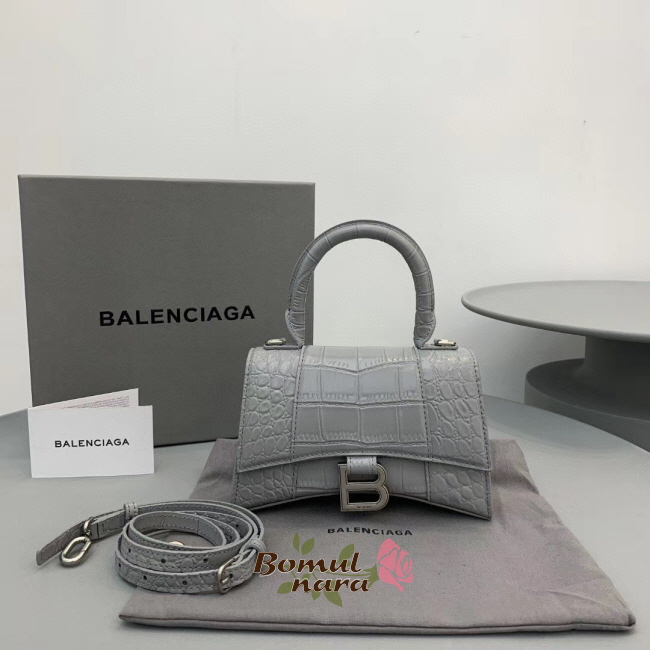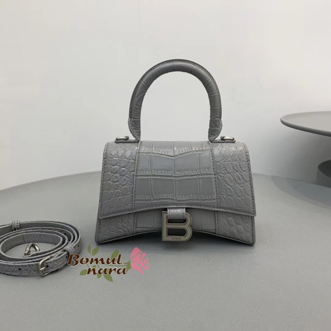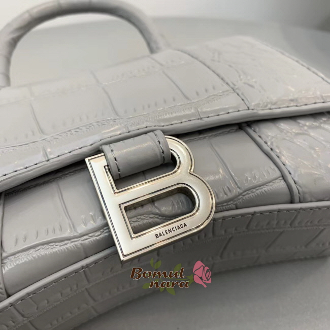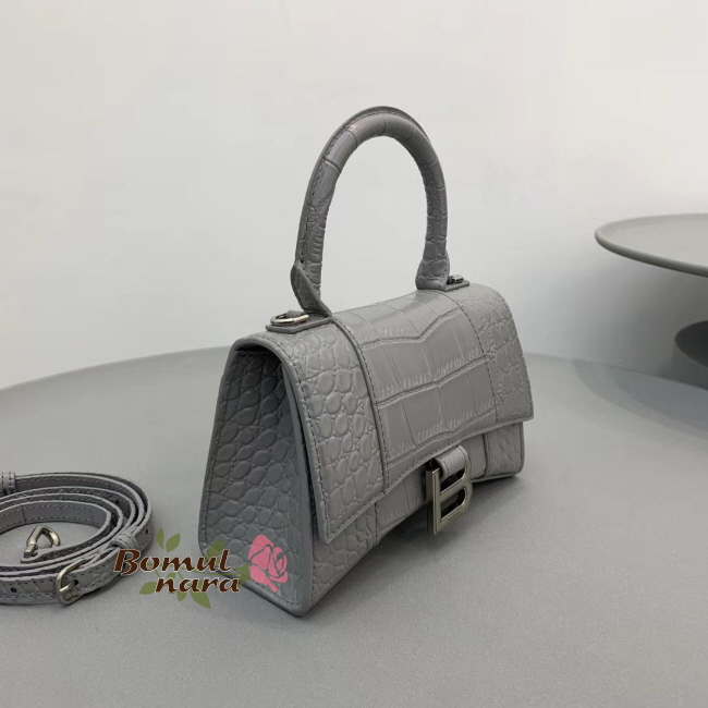 [스페셜오더]BALENCIAGA-592833 발렌시아가 그레이 크로커다일 엠보싱 아워글래스 탑 핸들 백 XS