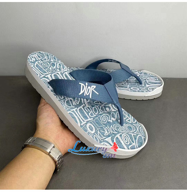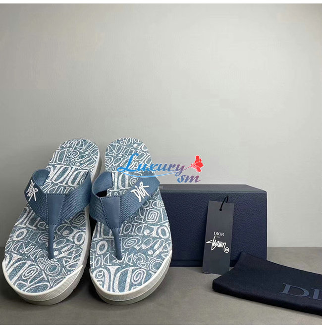 DIOR-3SA086 디올 블루 DIOR AND SHAWN 자수 나일론 플립플롭 남성용