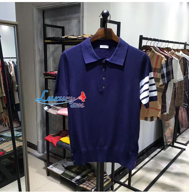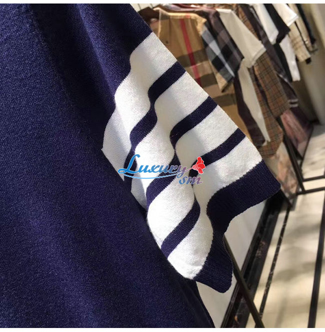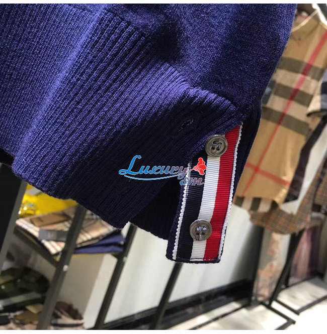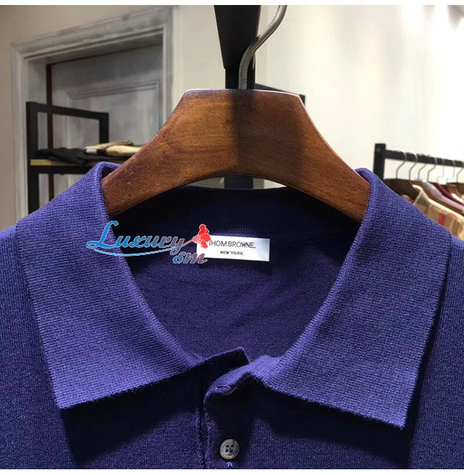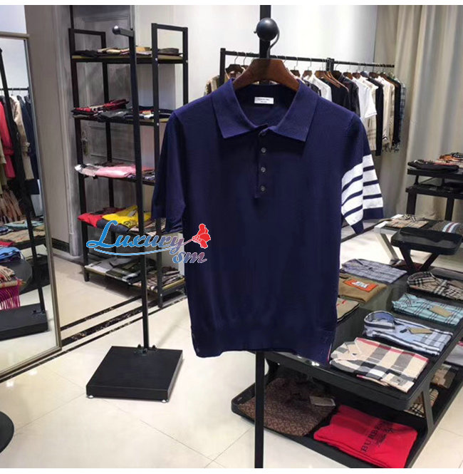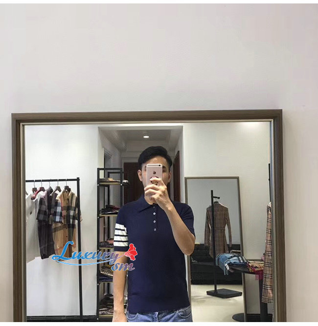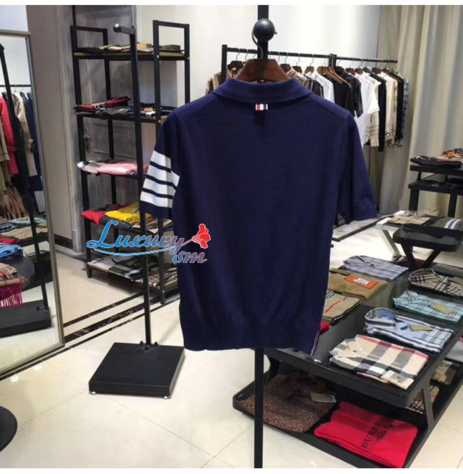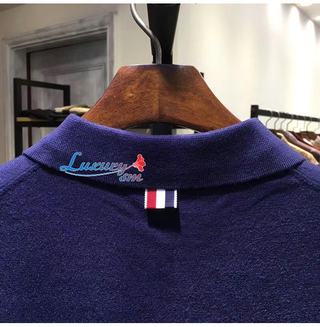 THOM BROWNE-07224 톰 브라운 네이비 니트 스트라이프 장식 폴로 티셔츠 남성용