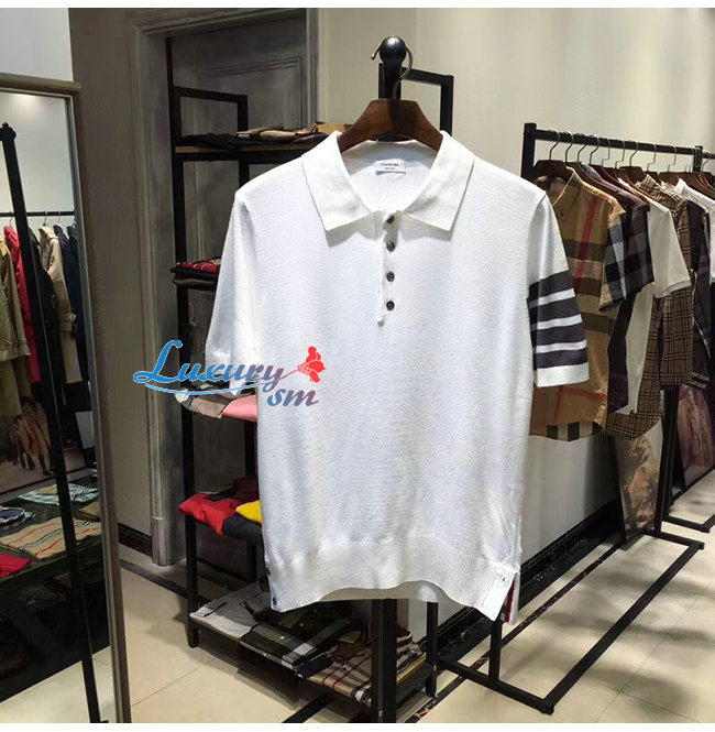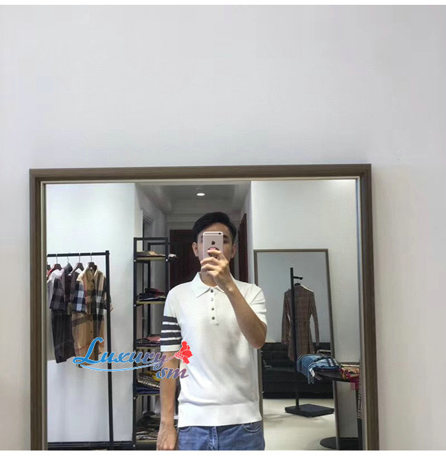 THOM BROWNE-07224 톰 브라운 네이비 니트 스트라이프 장식 폴로 티셔츠 남성용 가격 : 150,000원