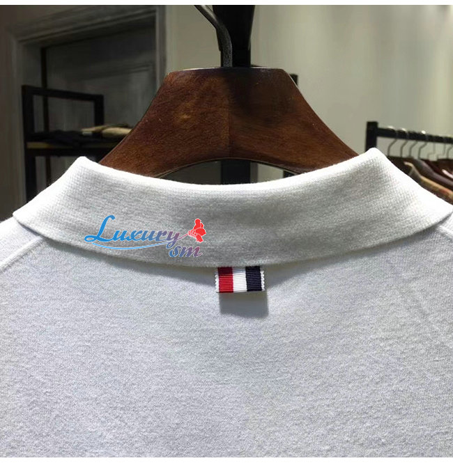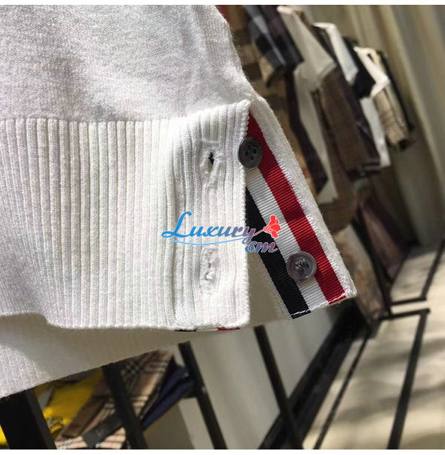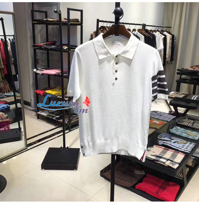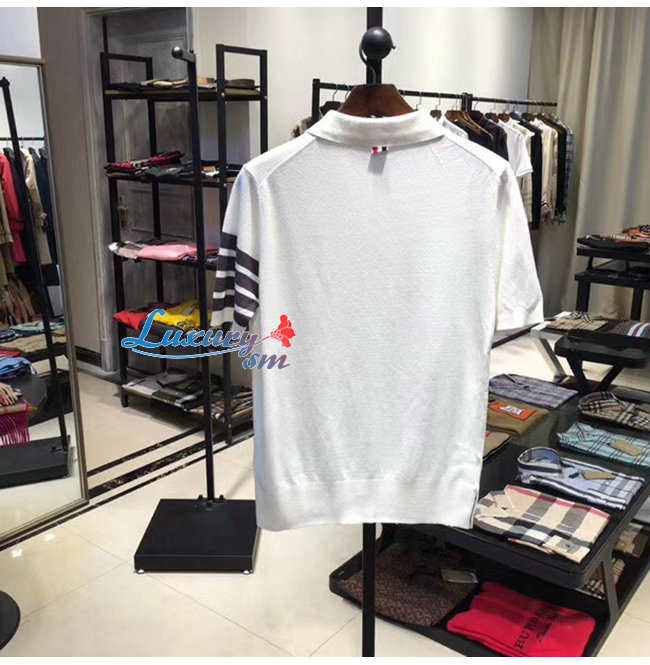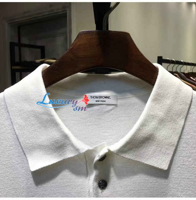 THOM BROWNE-07226 톰 브라운 화이트 니트 스트라이프 장식 폴로 티셔츠 남성용