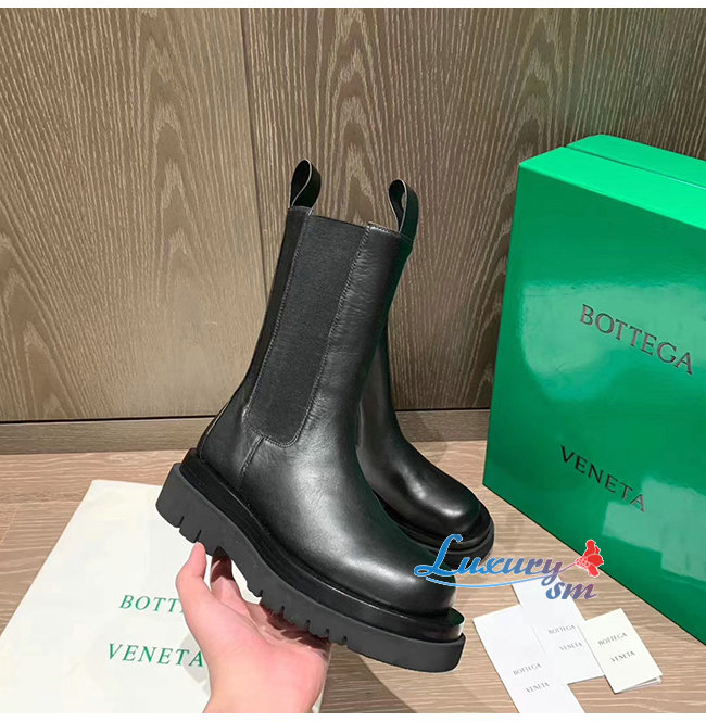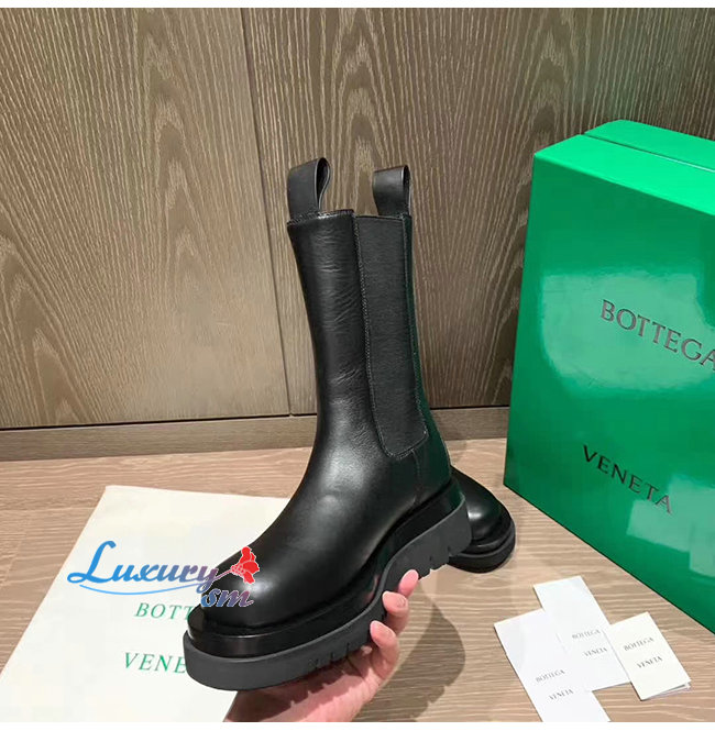 BOTTEGA VENETA-592045 보테가 베네타 네로 송아지 가죽 BV 러그 부츠