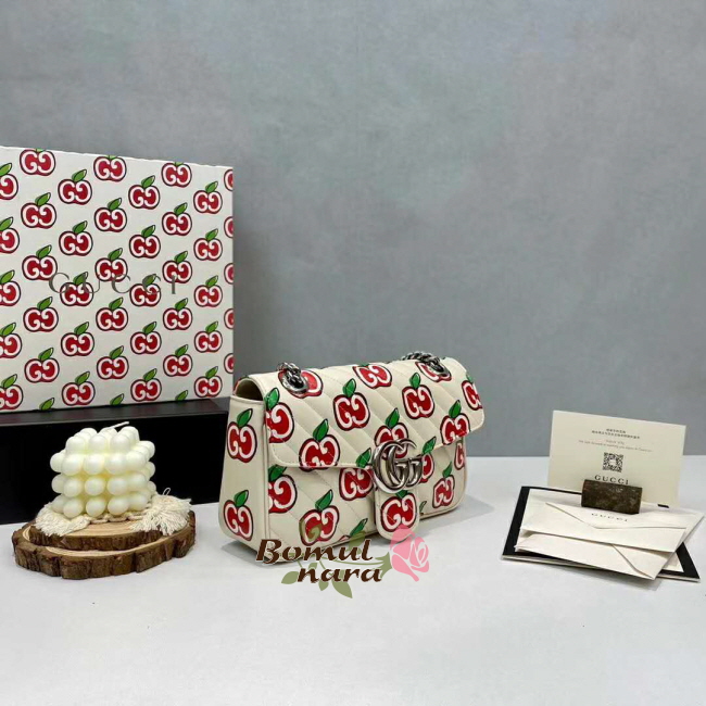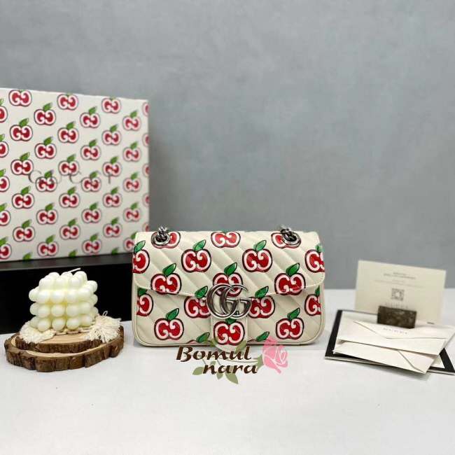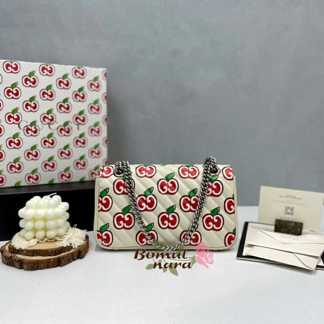 [스페셜오더]GUCCI-443497 9086 구찌 아이보리 GG 마몽 GG 애플 프린트 스몰 숄더백