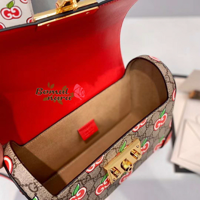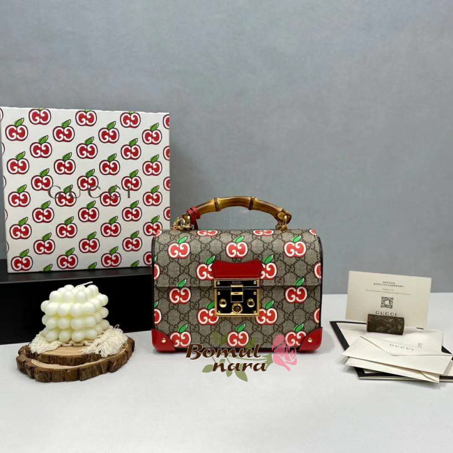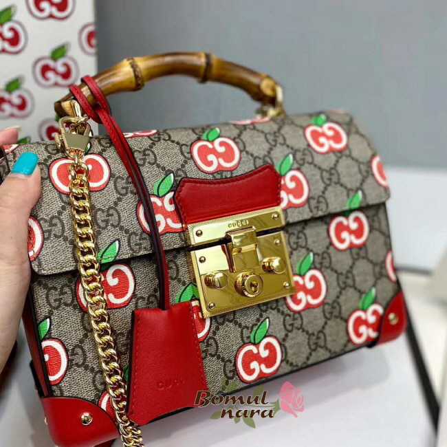 [스페셜오더]GUCCI-603221 8646 구찌 [패들락] GG 애플 프린트 스몰 밤부 숄더백