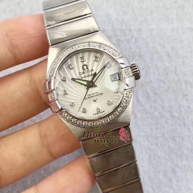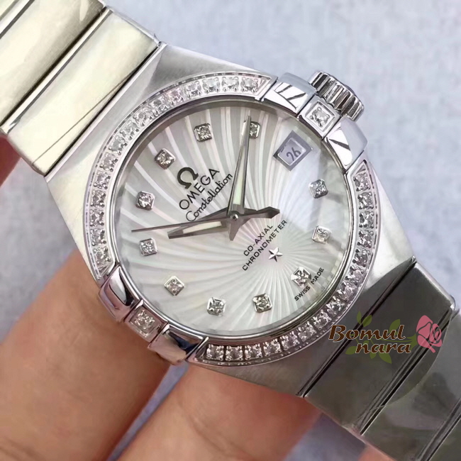 [스페셜오더]OMEGA-오메가 컨스텔레이션 다이아 베젤 인덱스 스틸 화이트 여성시계 27mm