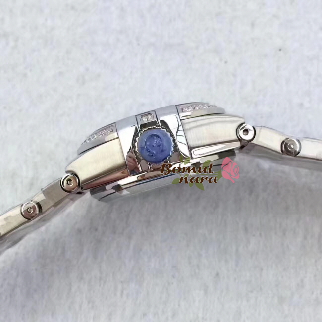 다이아몬드 인덱스로 장식한 실버 컬러 다이얼을
