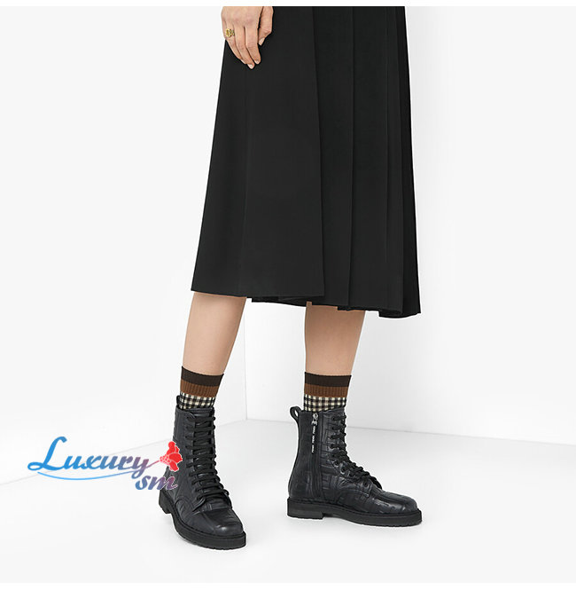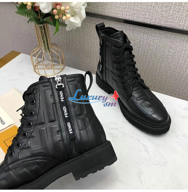 FENDI-8T8018 펜디 블랙 나파 가죽 앵클 바이커 부츠 여성용