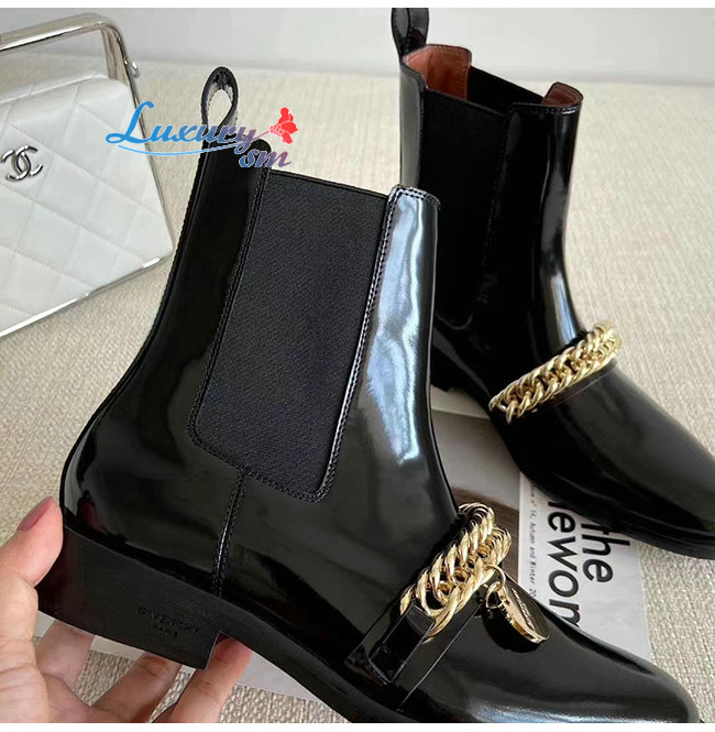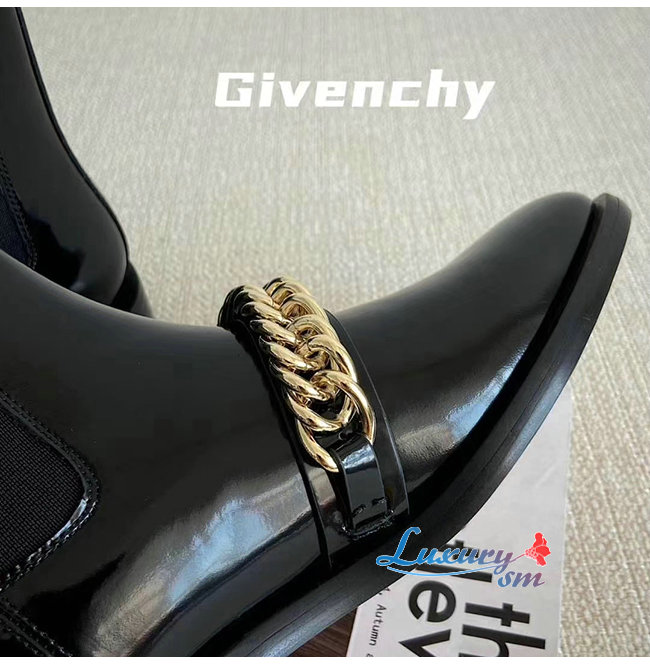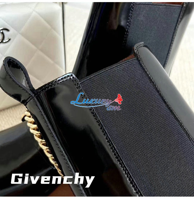 GIVENCHY-BE601TE0 지방시 블랙 송아지 가죽 체인 장식 첼시 부츠 여성용