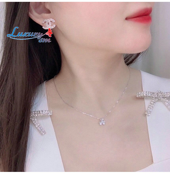 CHANEL-09042 샤넬 실버 크리스탈 장식 귀걸이
