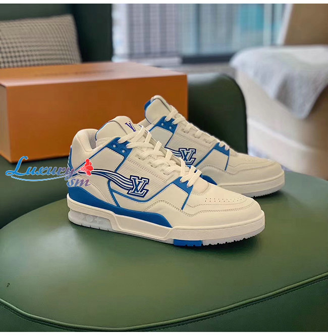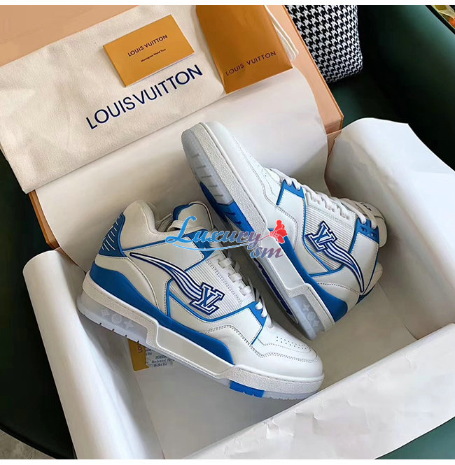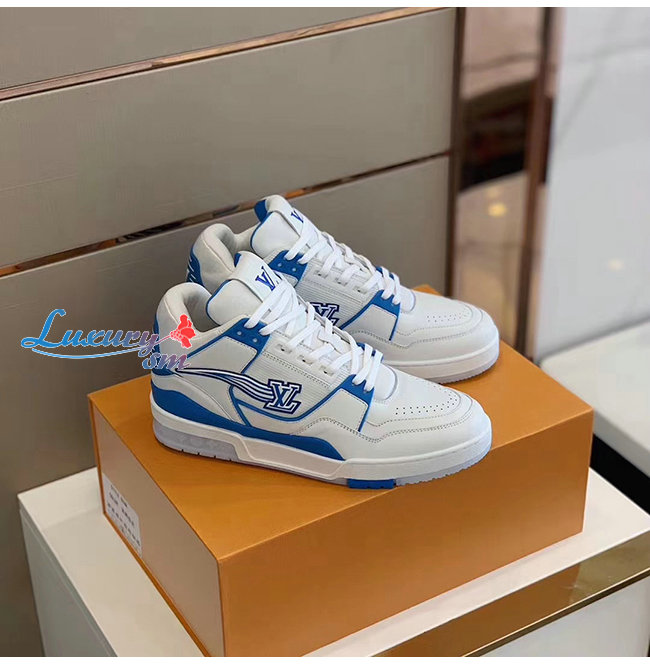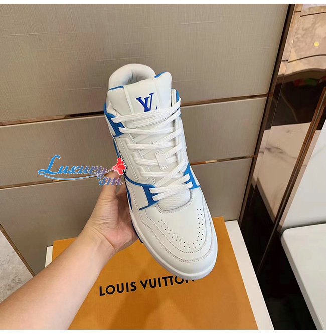 LOUIS VUITTON-1A8AGO 루이비통 블루/화이트 송아지 가죽 LV 트레이너 스니커즈