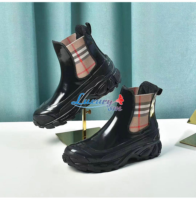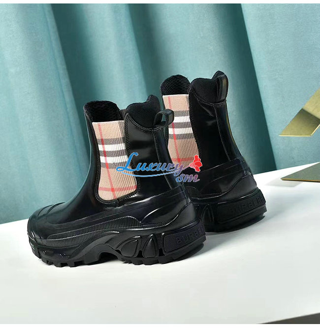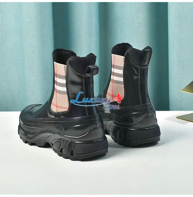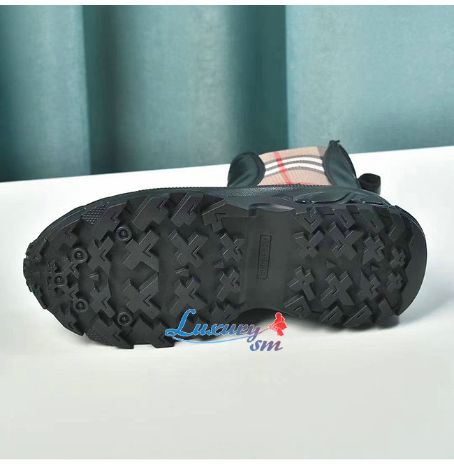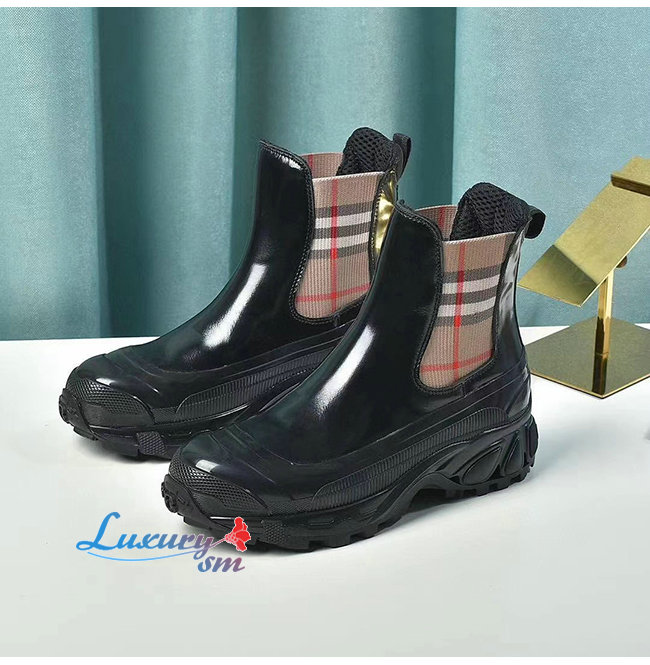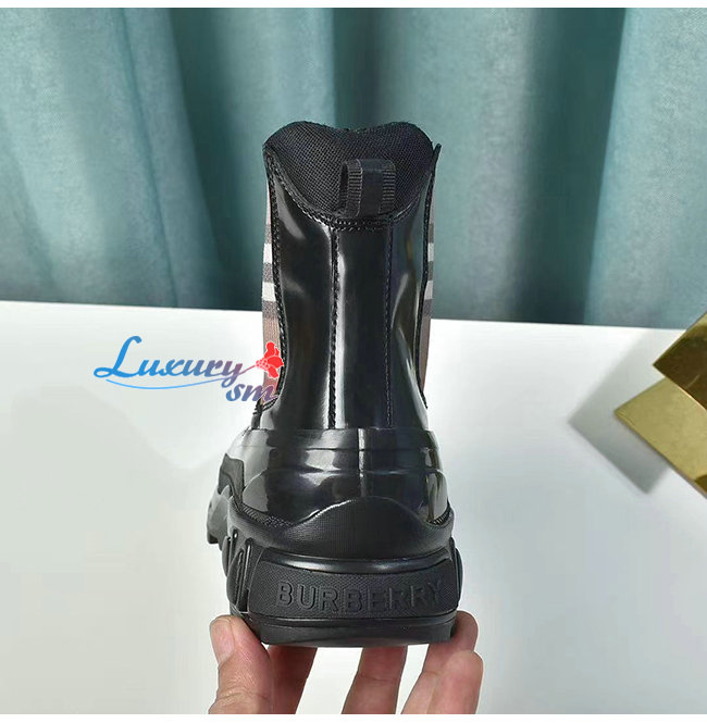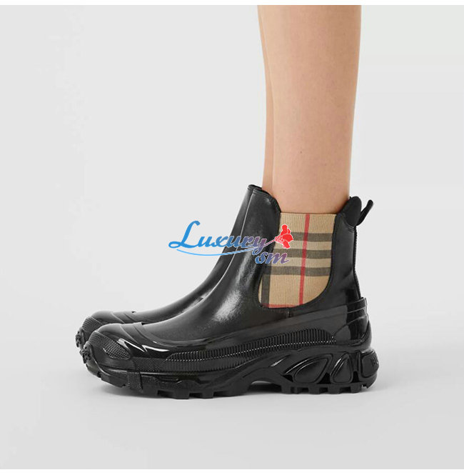 BURBERRY-80217991 버버리 블랙 빈티지 체크 디테일 코팅 캔버스 첼시 부츠