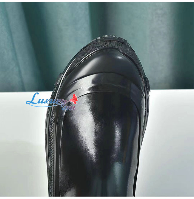 레인 부츠에서 영감을 얻은 광택 있는 오버슈즈.