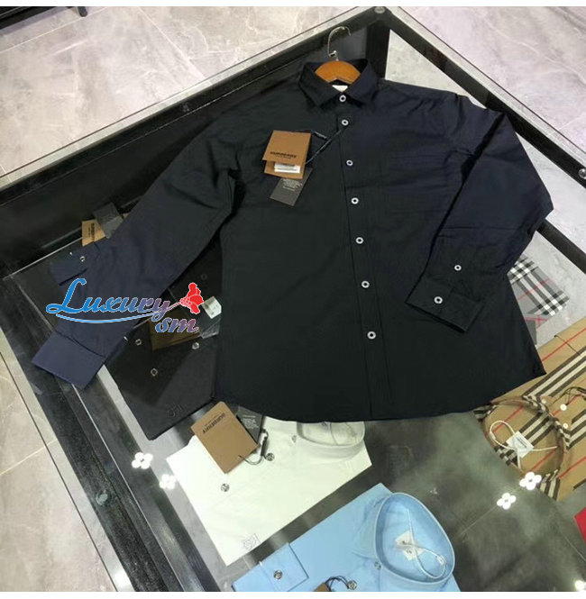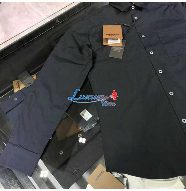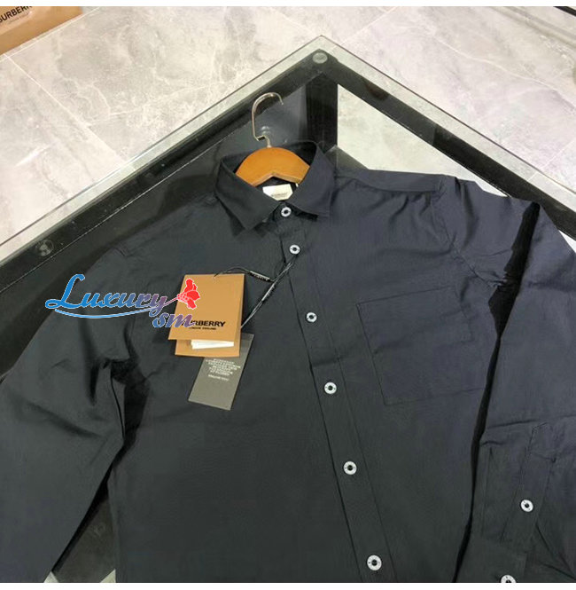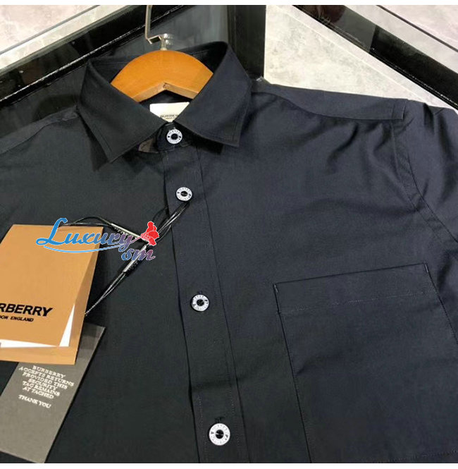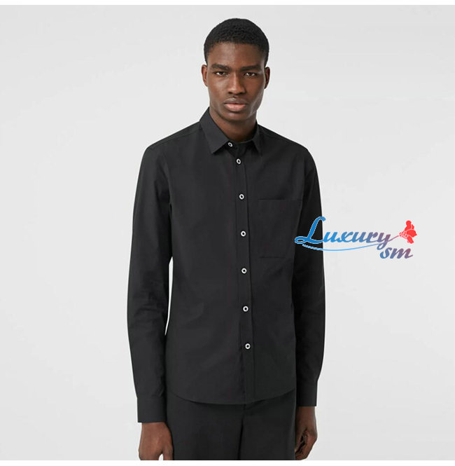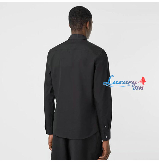 BURBERRY-80288761 버버리 블랙 슬림핏 스트레치 코튼 포플린 셔츠