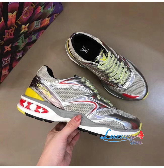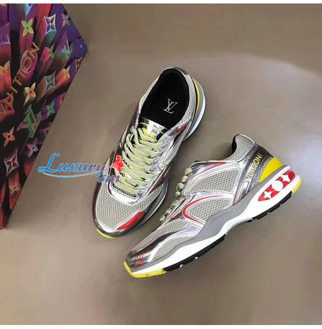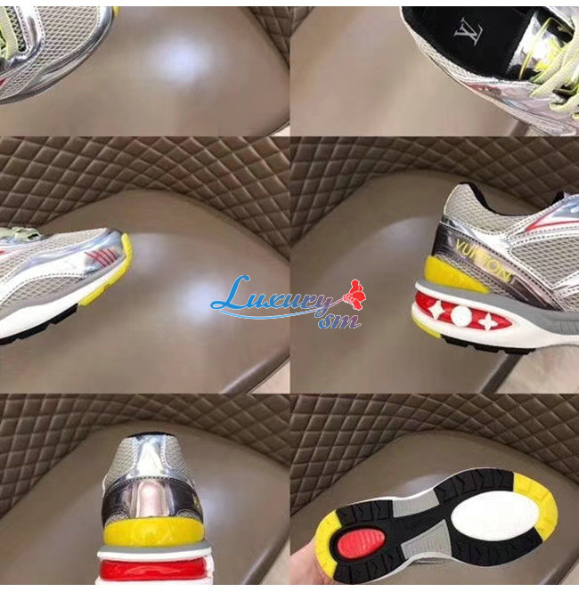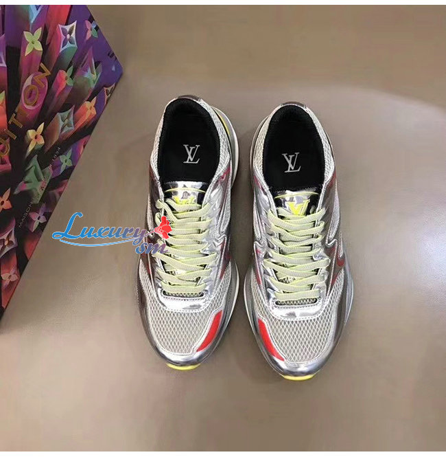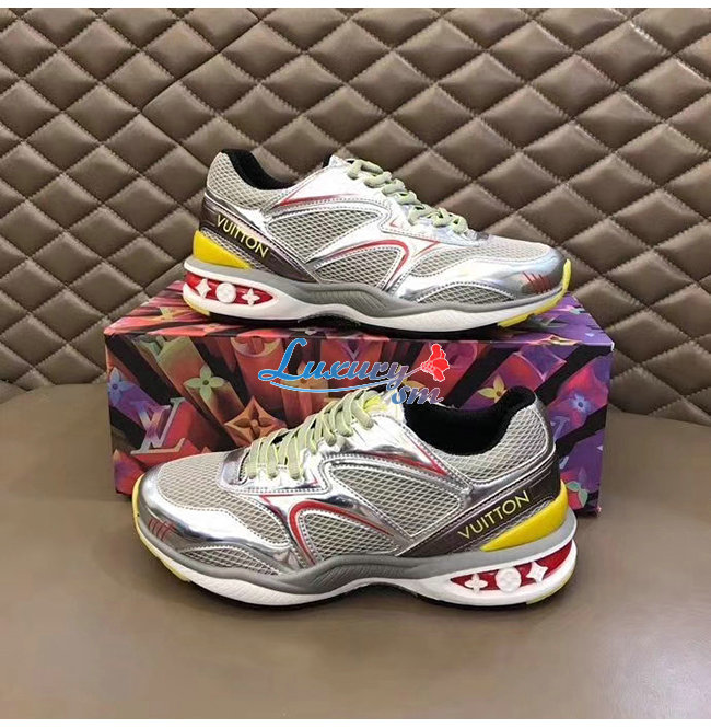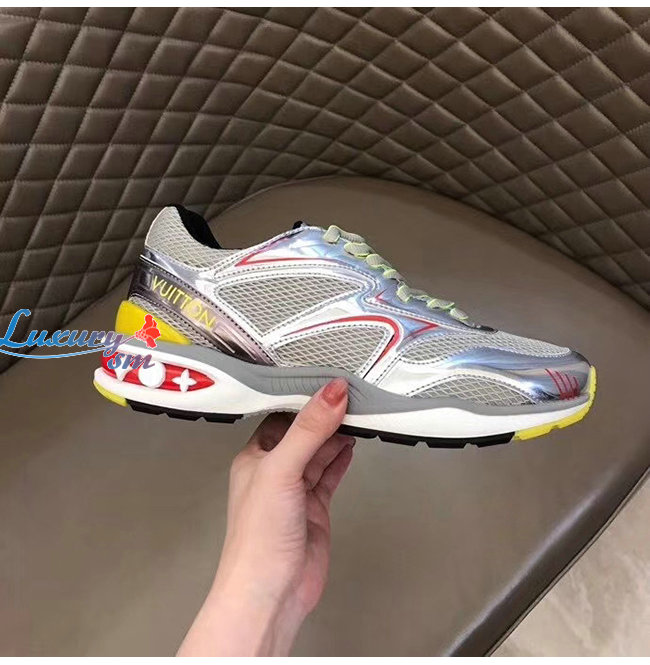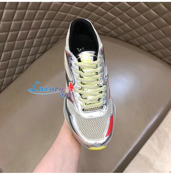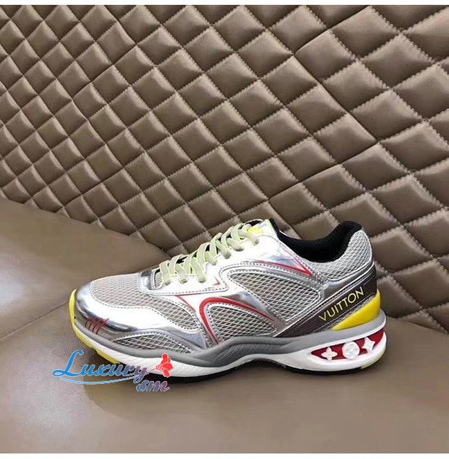 LOUIS VUITTON-1A7WK3 루이비통 실버 메탈릭 가죽 메쉬 LV 트레일 스니커즈
