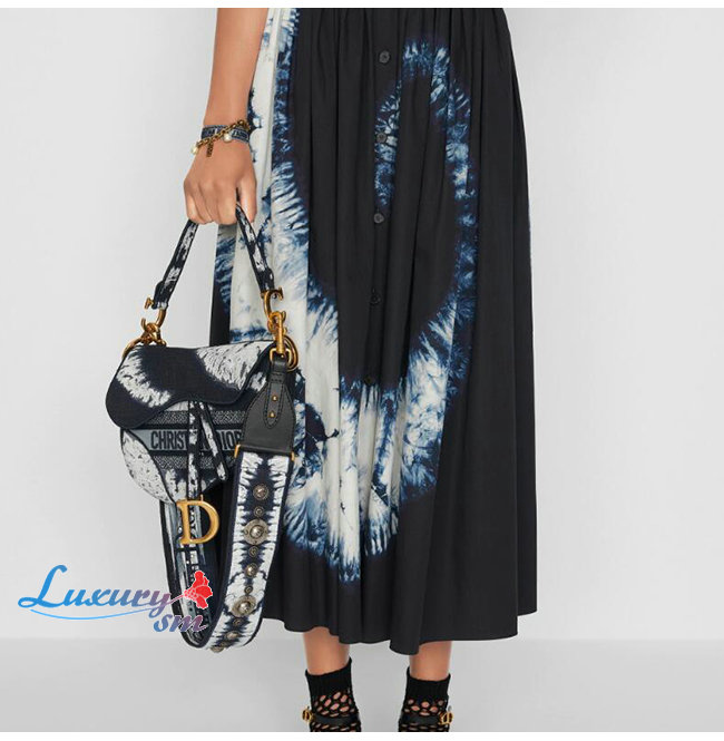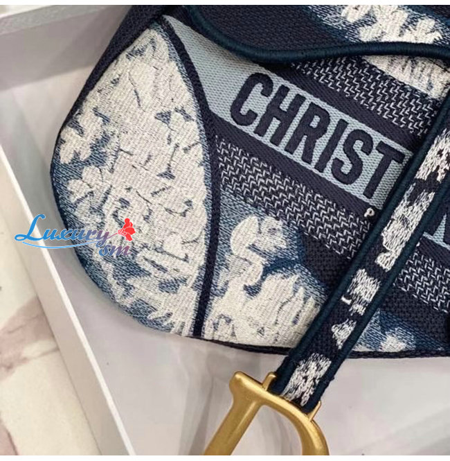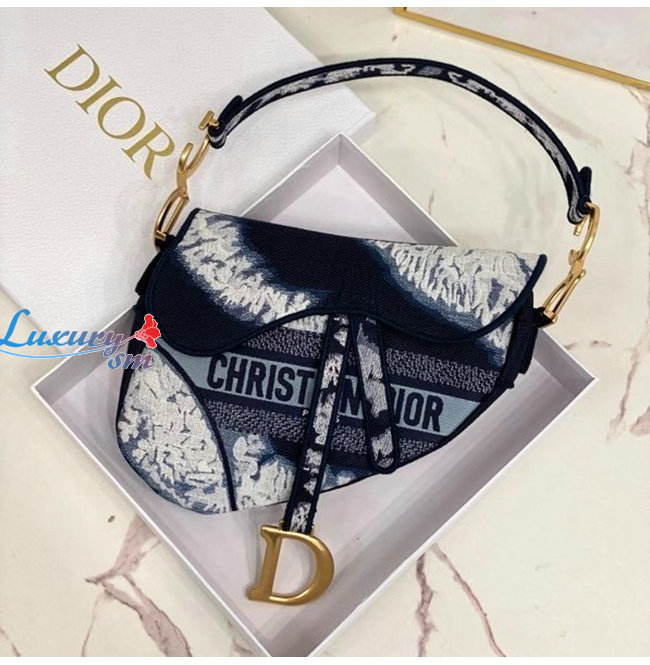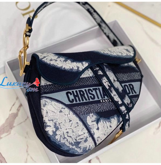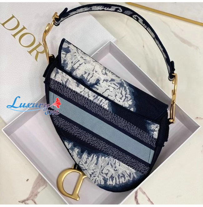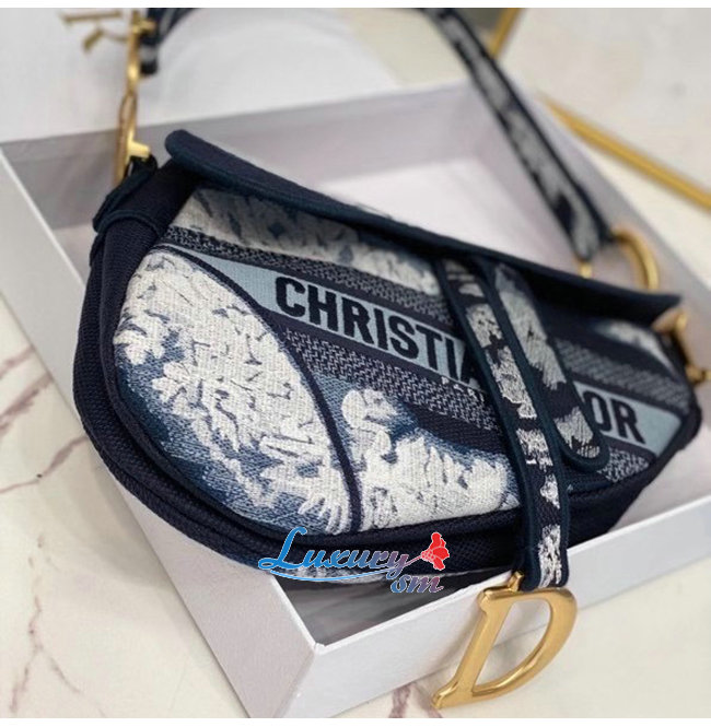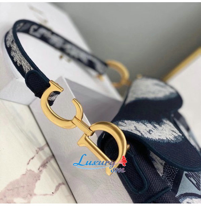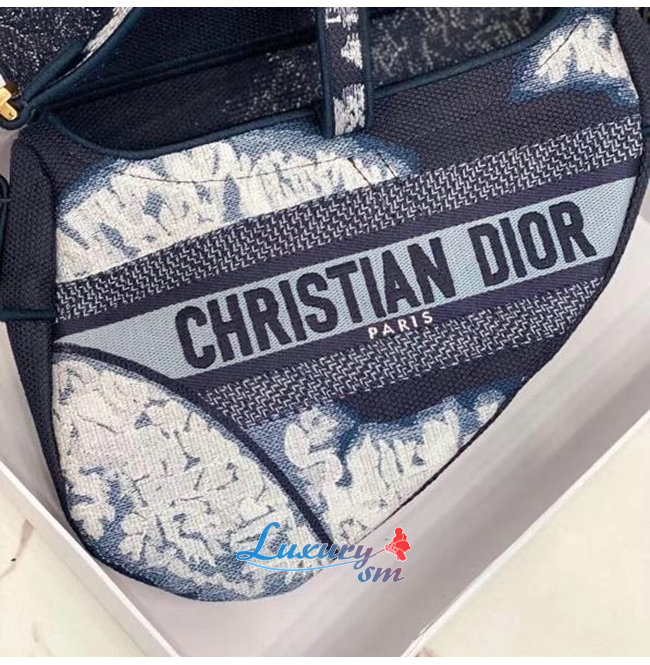 [스페셜오더]DIOR-M0446 디올 블루 Tie & Dior 자수 페브릭 새들백