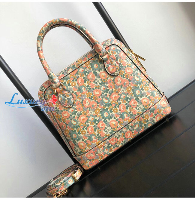 플로라 프린트가죽이 돋보이는 탑 핸들 쉐입과