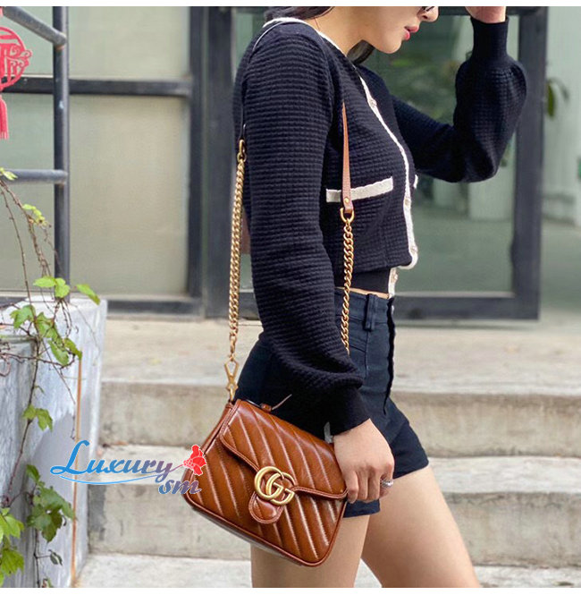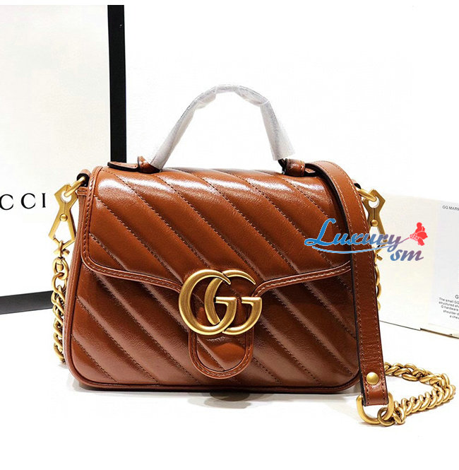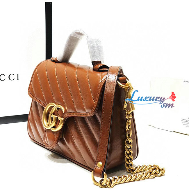 [스페셜오더]GUCCI-583571 2535 구찌 GG 마몽 브라운 마틀라세 가죽 미니 탑 핸들 백
