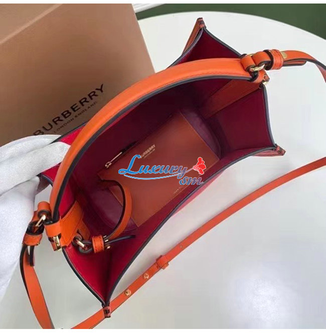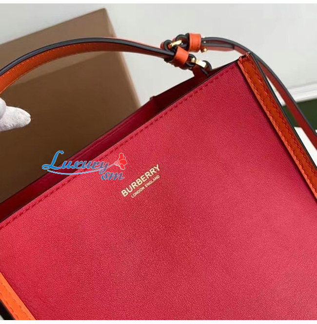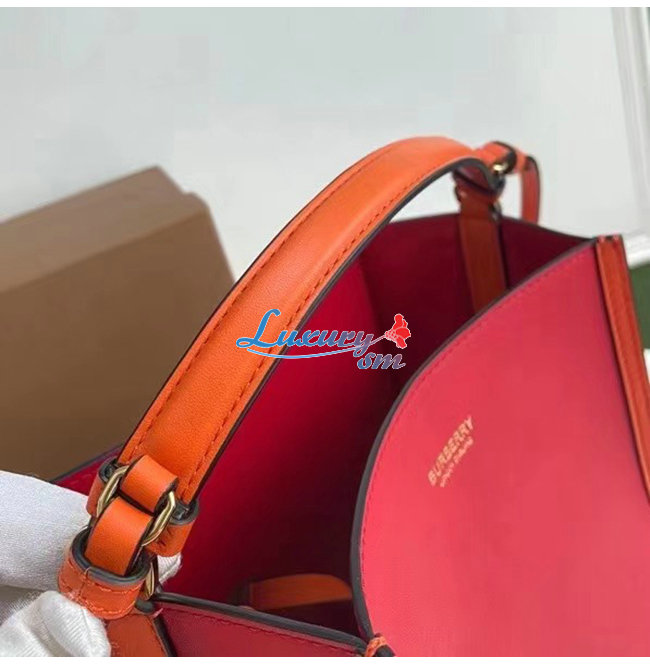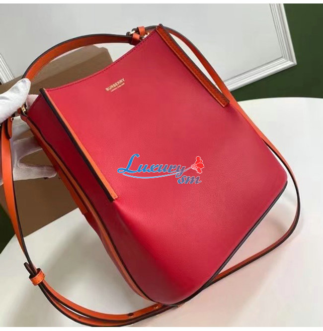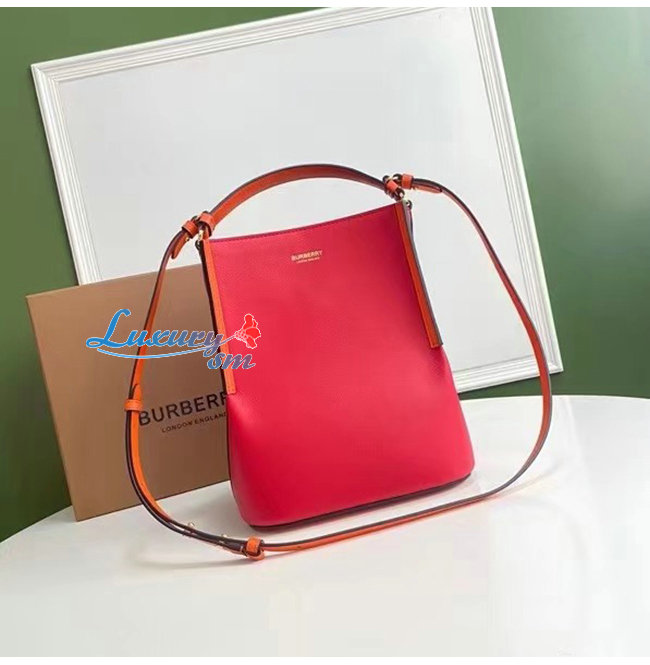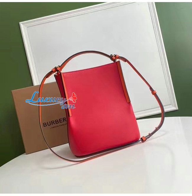 [스페셜오더]BURBERRY-80229491 버버리 크림슨 스몰 투톤 레더 페기 버킷 백