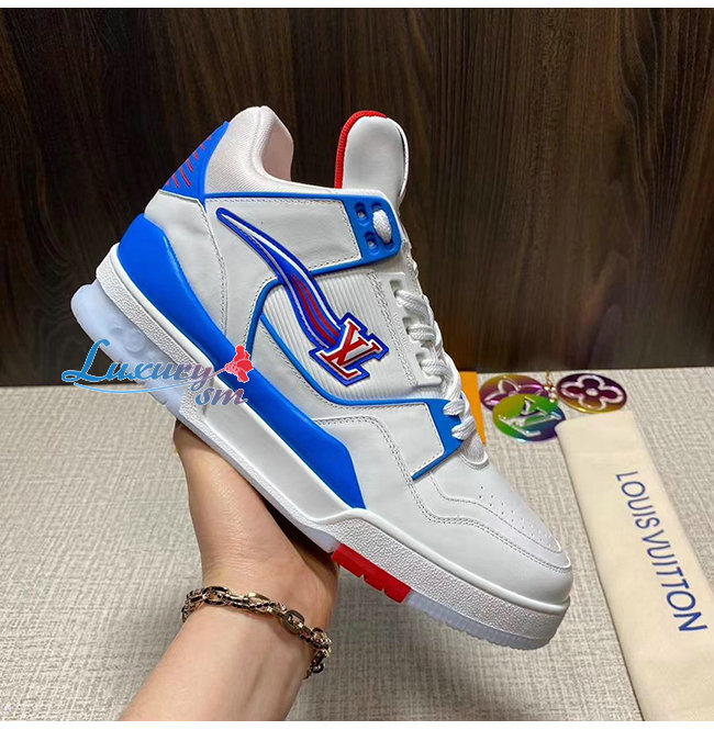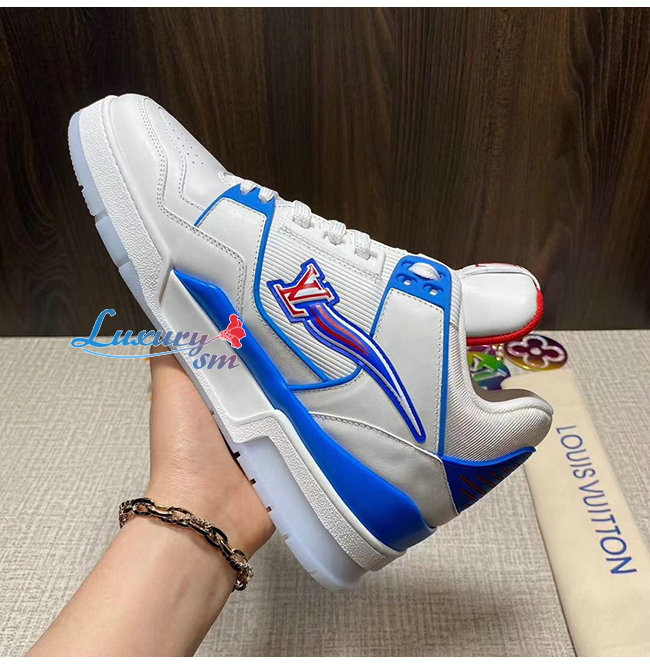 LOUIS VUITTON-1A8AGO 루이비통 블루/화이트 송아지 가죽 LV 트레이너 스니커즈