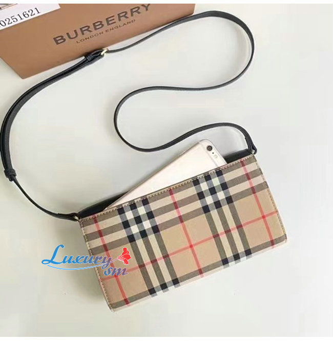 [스페셜오더]BURBERRY-80251621 버버리 브라운 디태처블 스트랩 빈티지 체크 레더 지갑