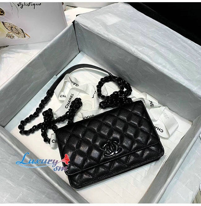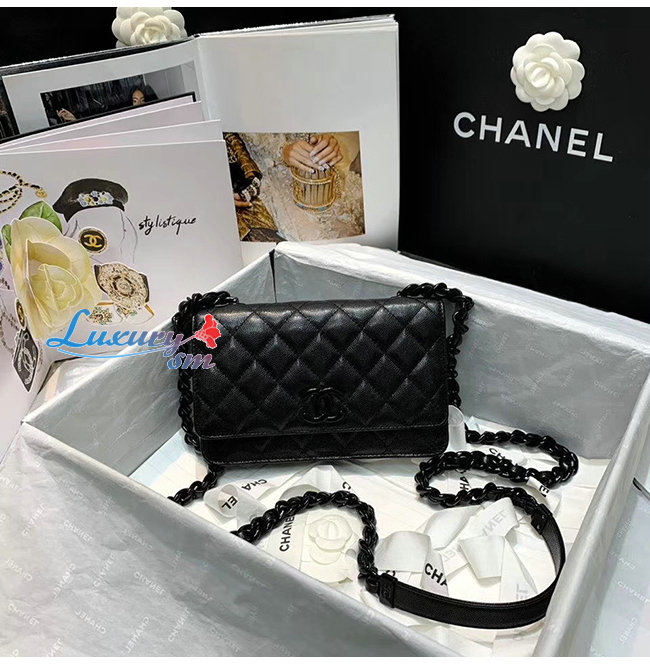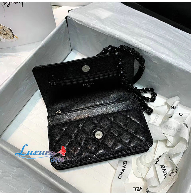 [스페셜오더]CHANEL-AP1954 샤넬 블랙 그레인 카프스킨 블랙 메탈 체인 월릿