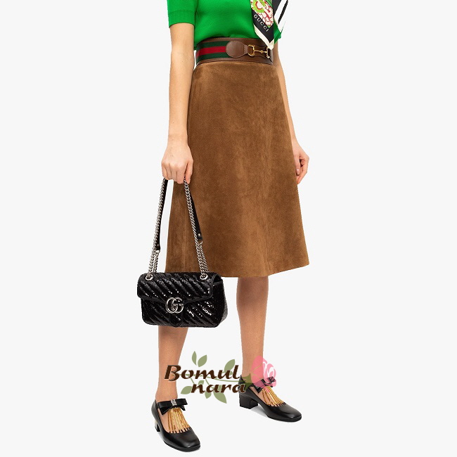 [스페셜오더]GUCCI-443497 8277 구찌 GG 마몽 블랙 사선형 마틀라세 가죽 스몰 숄더백