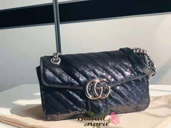 [스페셜오더]GUCCI-443497 1000 구찌 블랙 GG 마몽 스몰 시퀸 숄더백