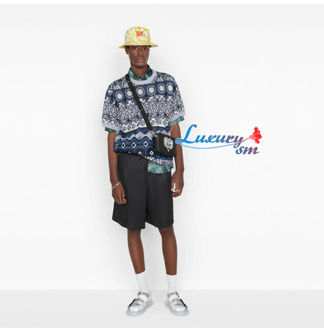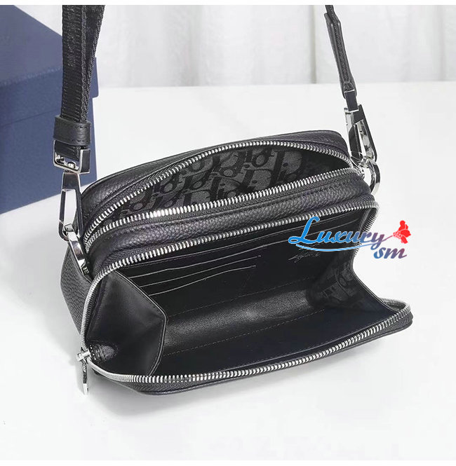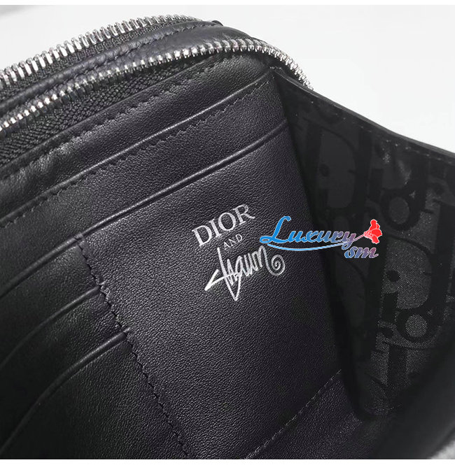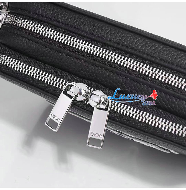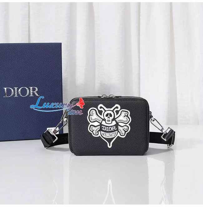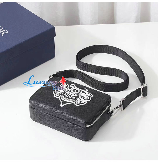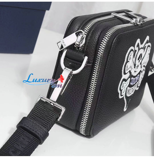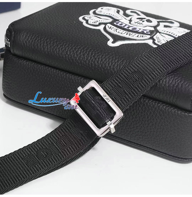 [스페셜오더]DIOR-2PUBC119 디올 블랙 그레인 송아지 가죽 DIOR AND SHAWN 꿀벌 패치 자수 스트랩 파우치