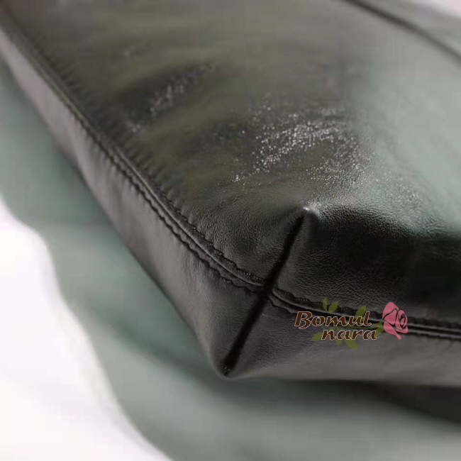 고급스러운 카프레더 바디에 엔틱 금장 GG 로고 장식이