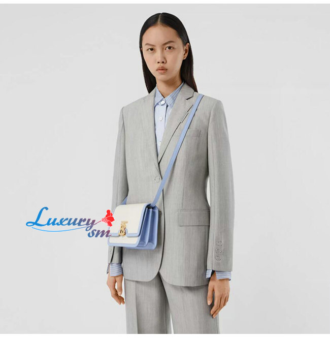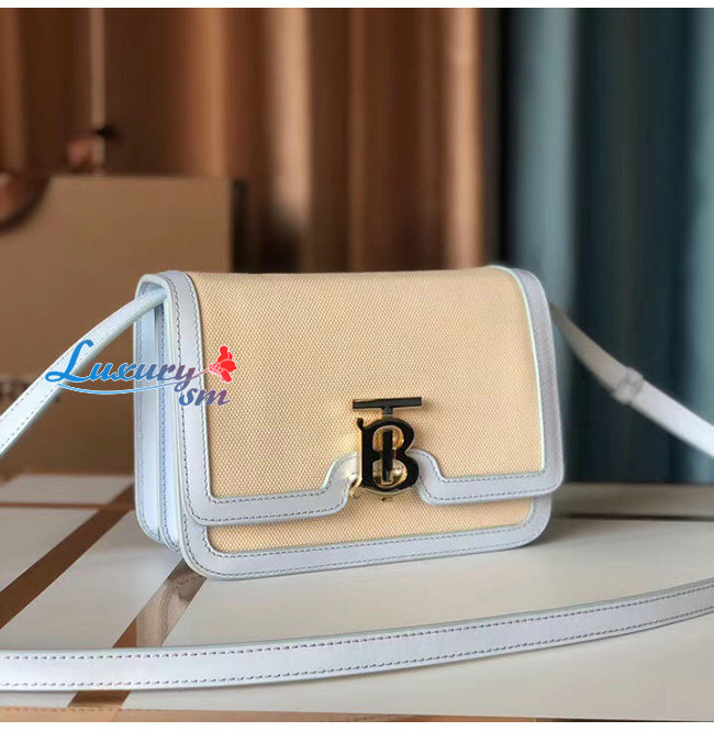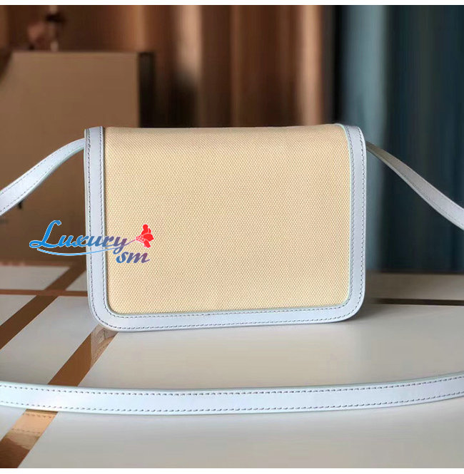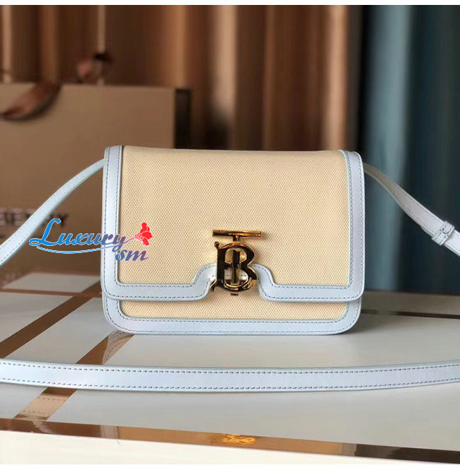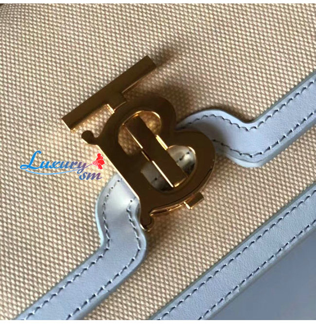 [스페셜오더]BURBERRY-80306651 버버리 내추럴/페일 블루 투톤 캔버스 레더 스몰 TB 백