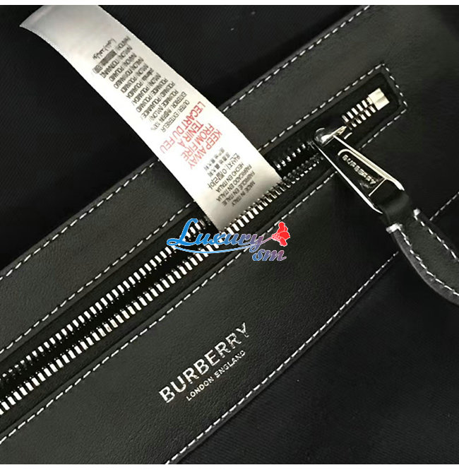 버버리로고와 스티치 디테일의 가죽 트리밍이 돋보