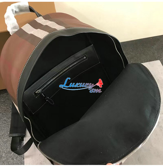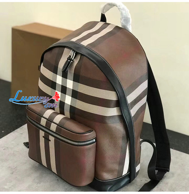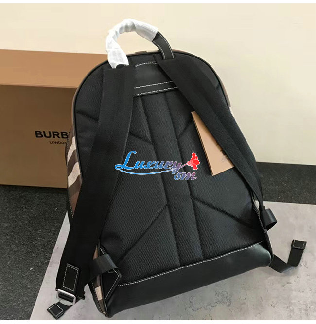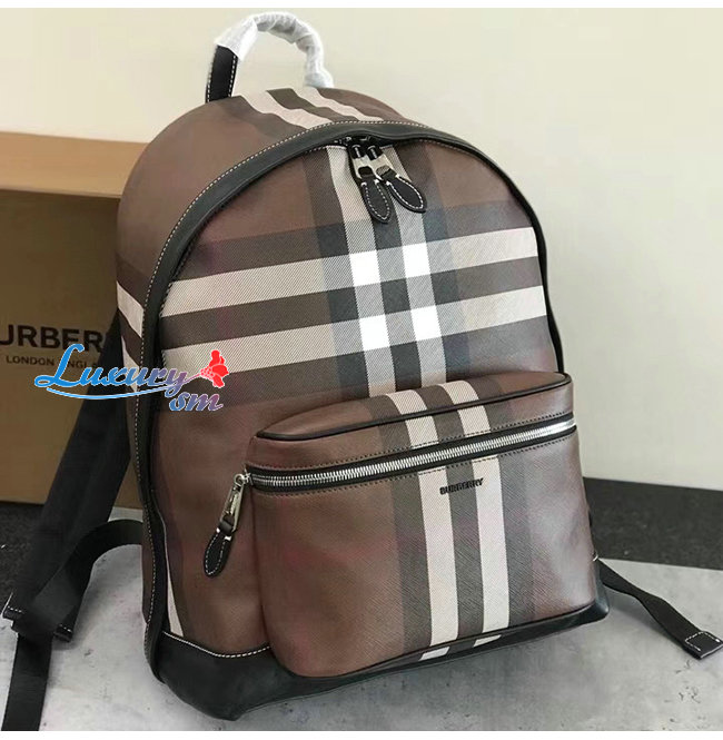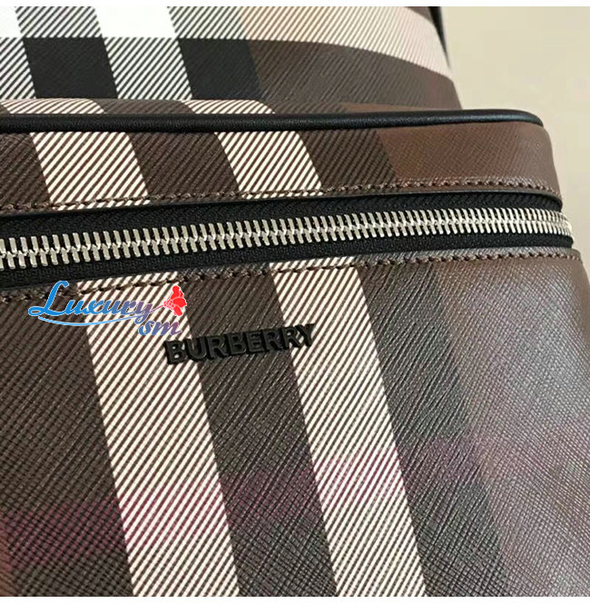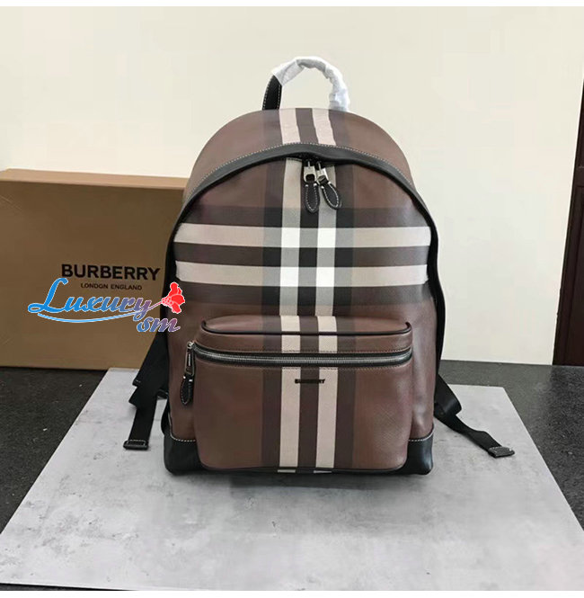 BURBERRY-80365491 버버리 다크 버치 브라운 체크 E-캔버스 백팩