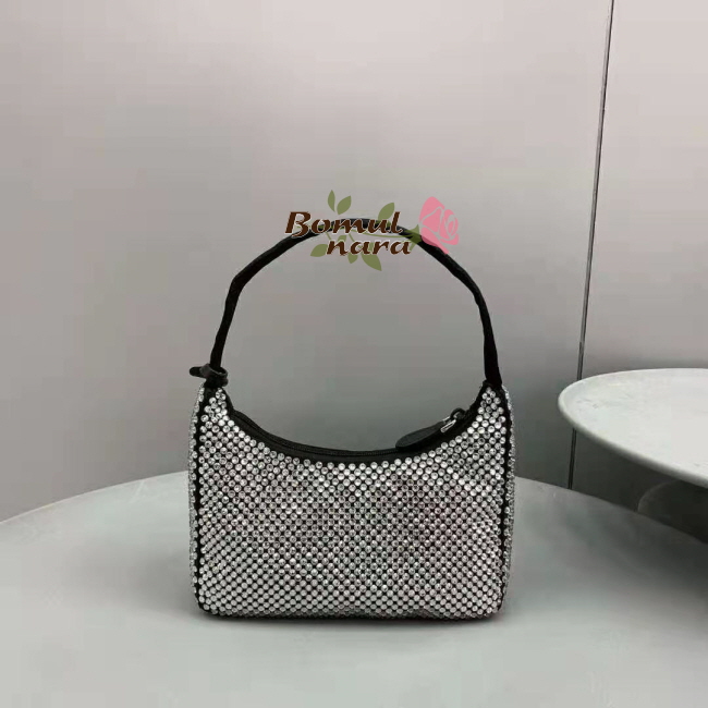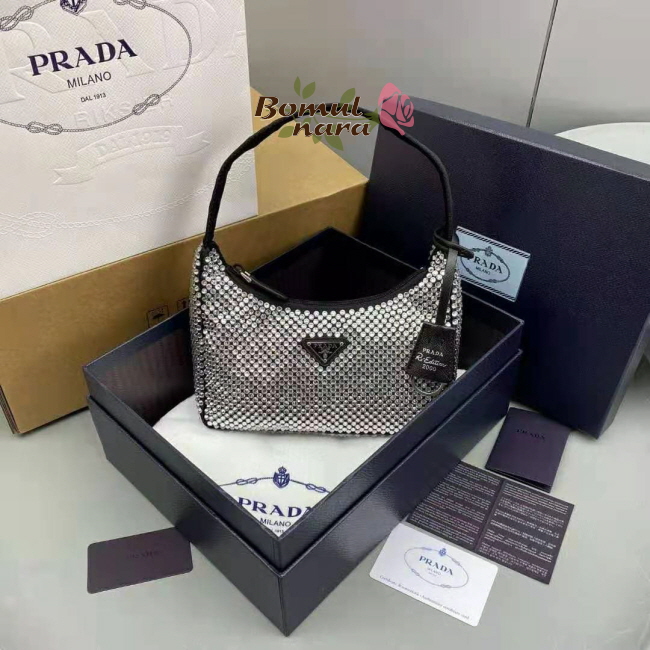 프라다를 상징하는이 미니 호보백은 인공 크리스탈 장식으로