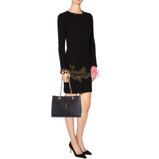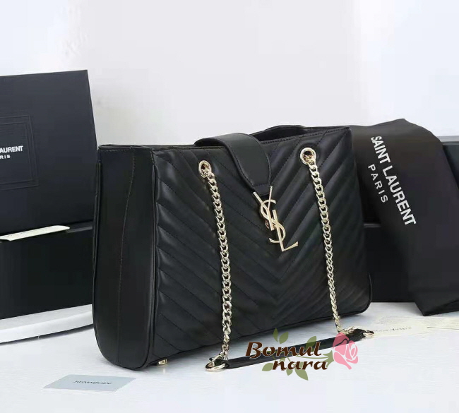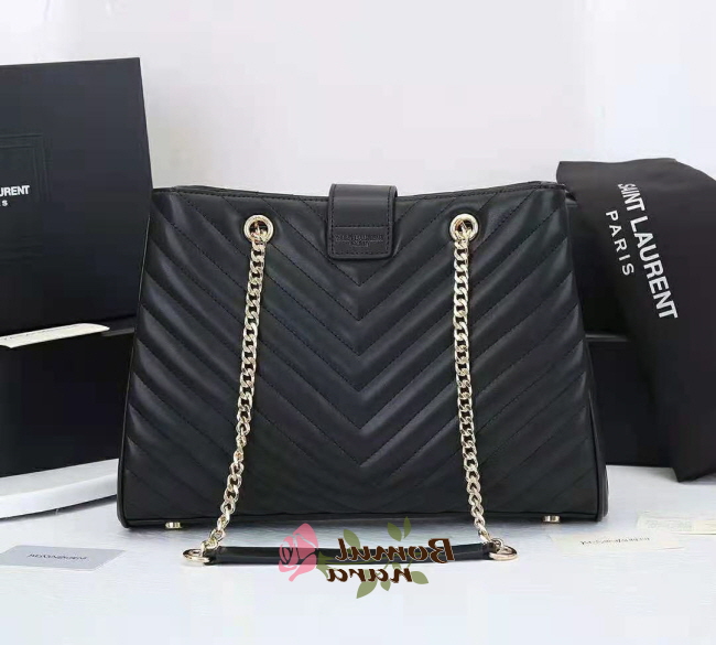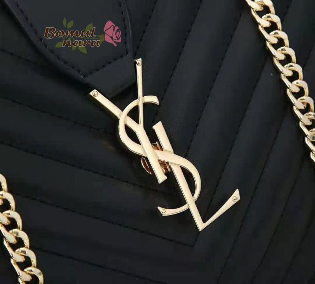 생 로랑 YSL 모노그램 쉐브론 체인 숄더백은 카프스킨