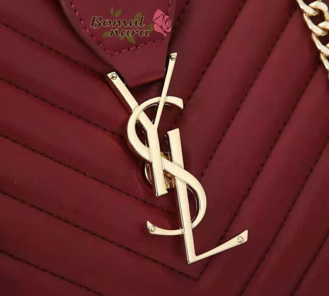 생 로랑 YSL 모노그램 쉐브론 체인 숄더백은 카프스킨