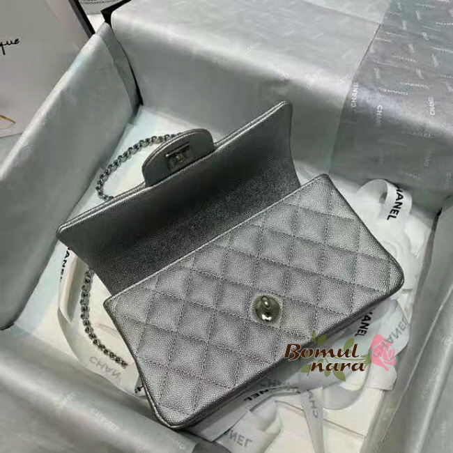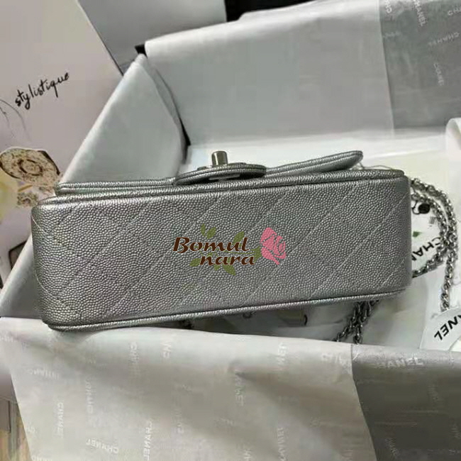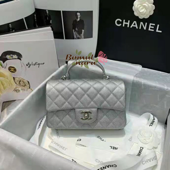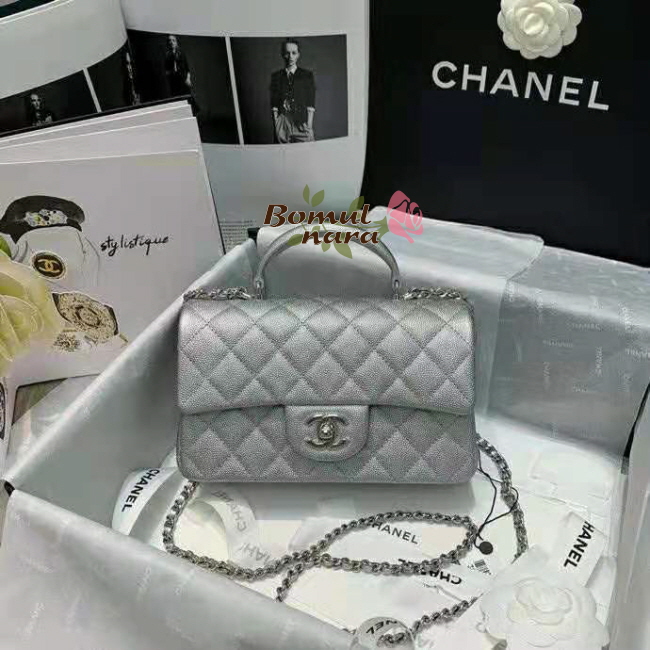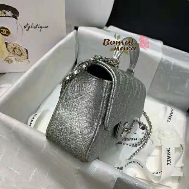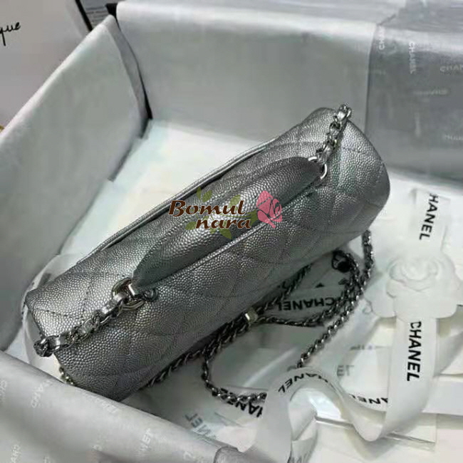 [스페셜오더]CHANEL-AS2431 샤넬 실버 메탈릭 캐비어 핸들 장식 미니 플랩 백