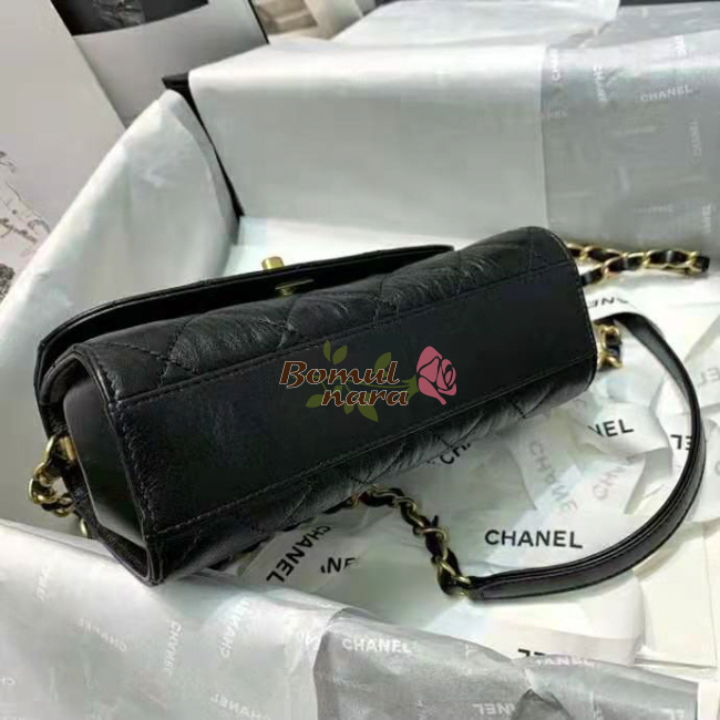 [스페셜오더]CHANEL-AS2477 샤넬 블랙 크럼플드 램스킨 CC로고 핸들 장식 미니 플랩 백