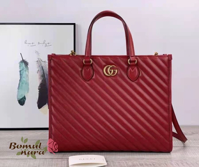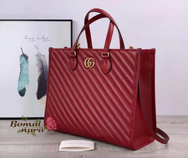 [스페셜오더]GUCCI-627332 6438 구찌 레드 마틀라쎄 GG 마몽 미디엄 토트백